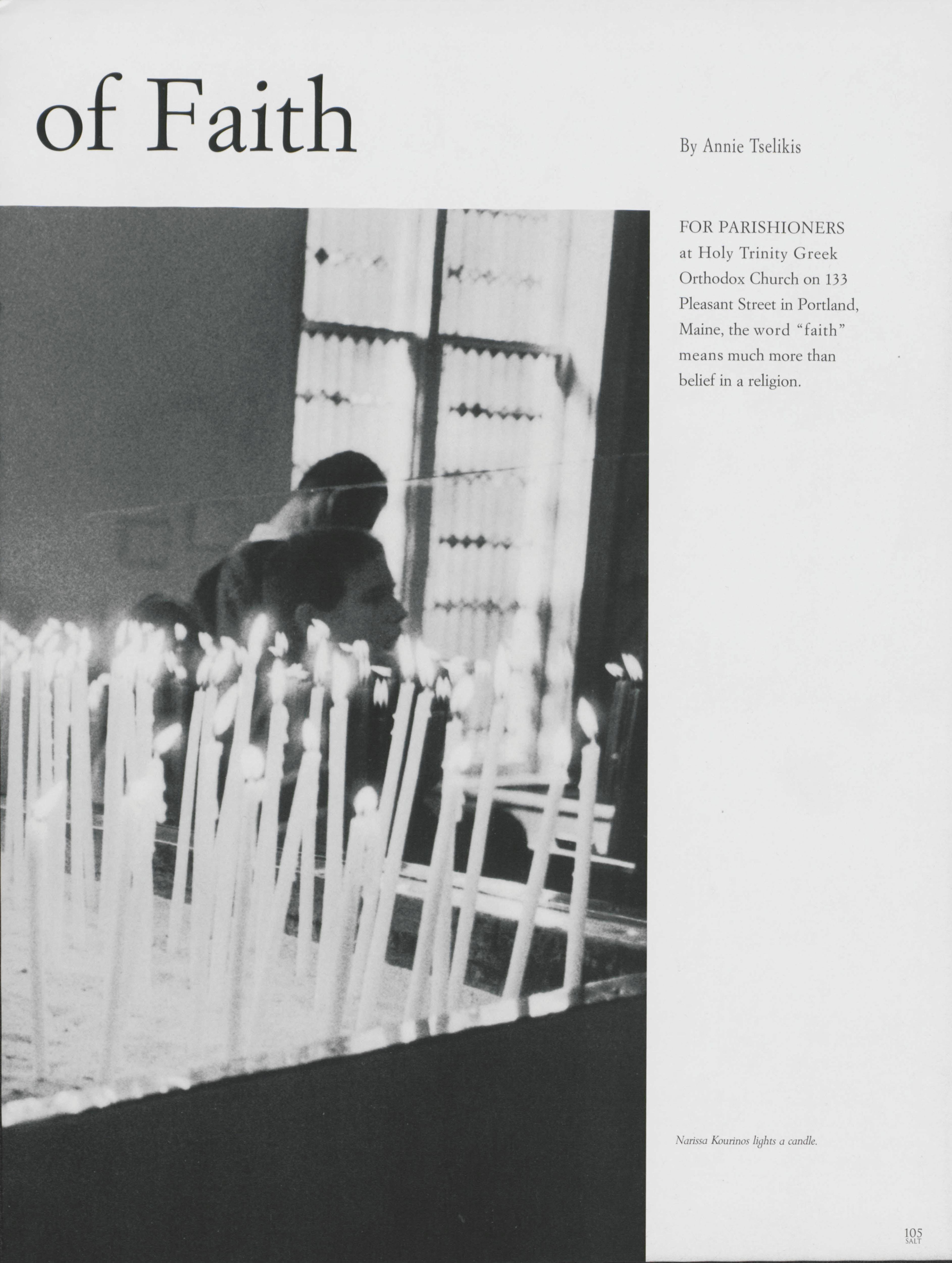 Annie Tselikis captures how the word faith means more than a belief in religion for parishioners at Holy Trinity Greek Orthodox Church in Portland.