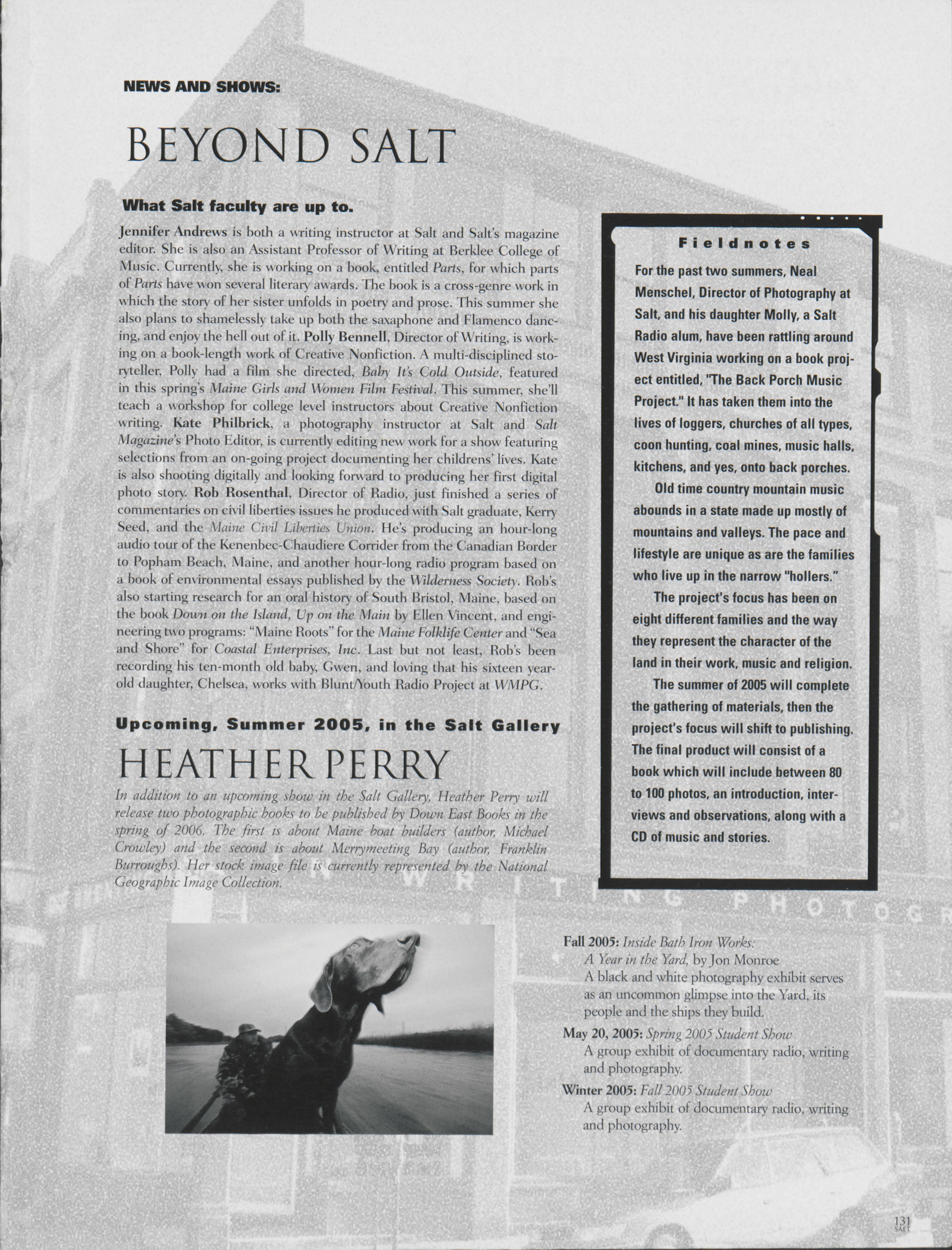 Write up on upcoming Salt shows and updates on Salt faculty.