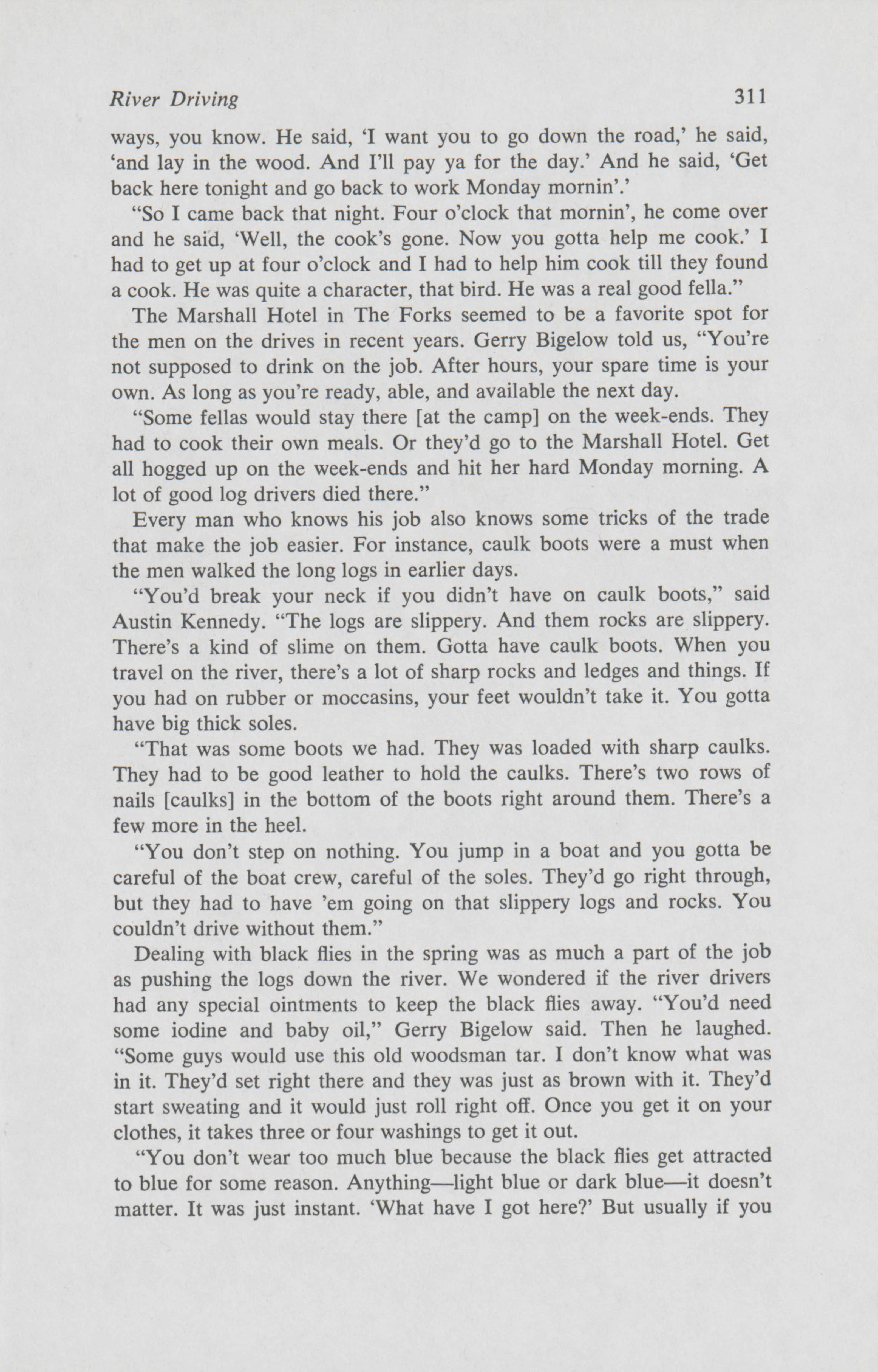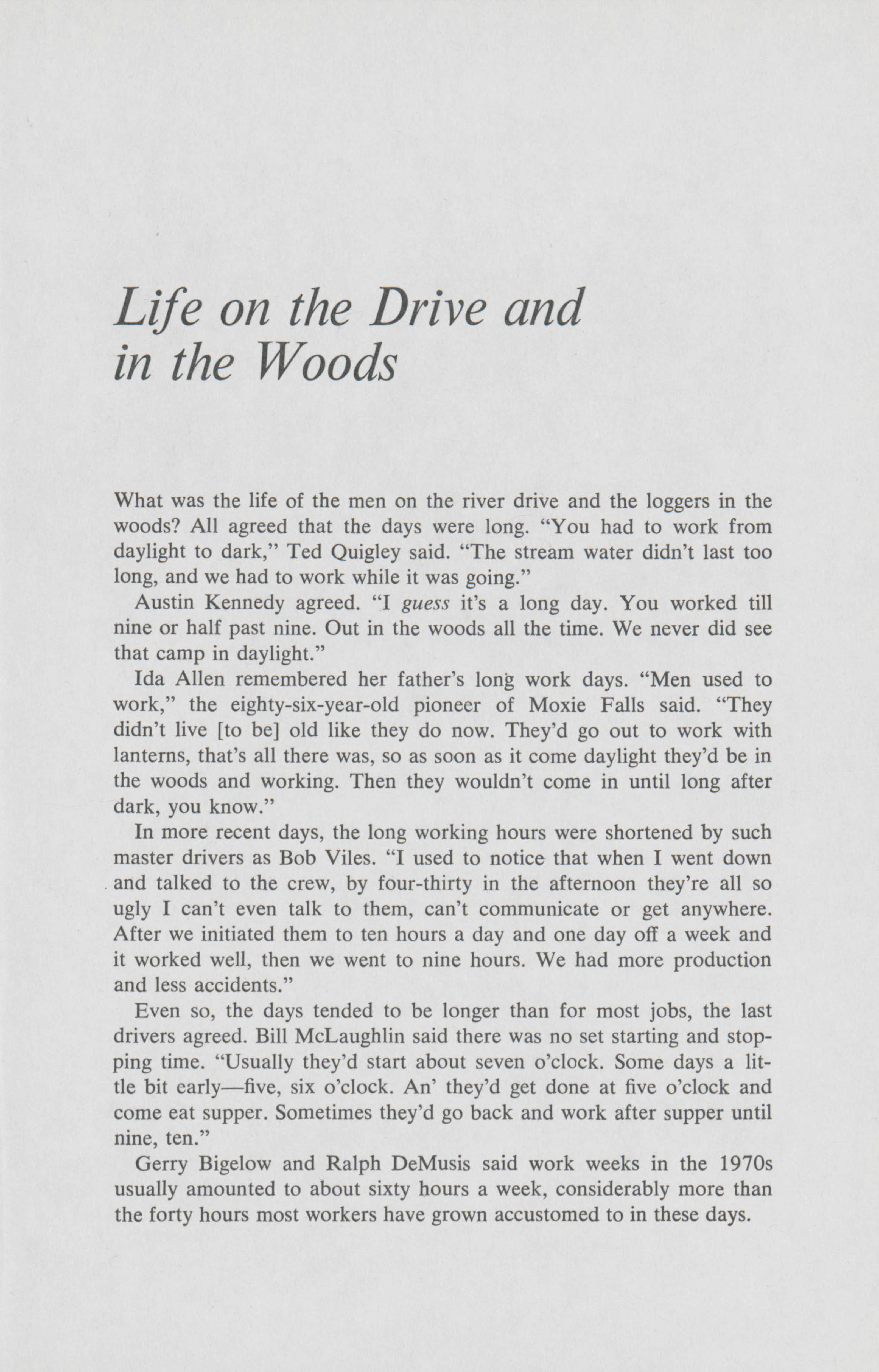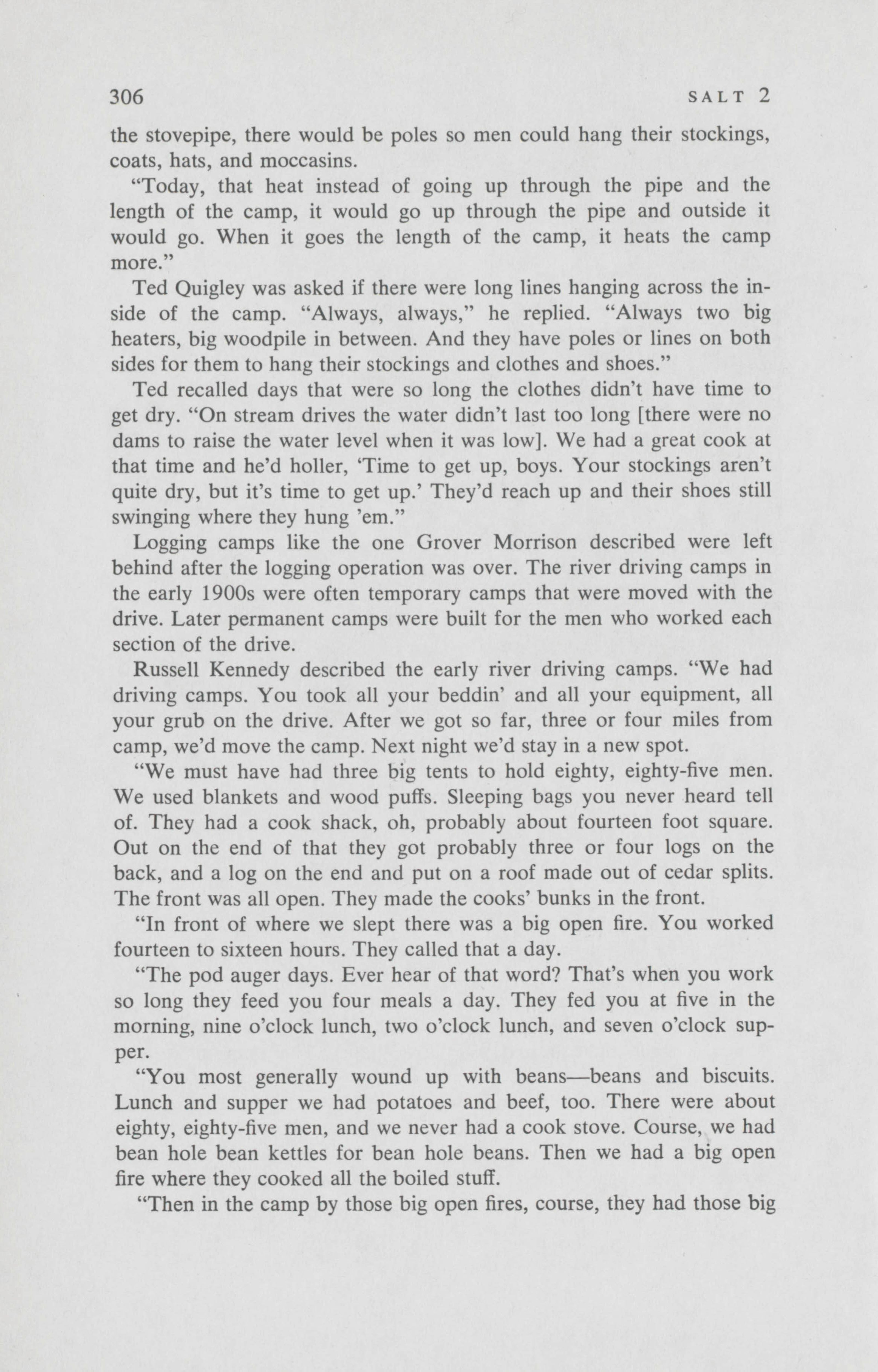 Salt investigates what life was like for river drivers and loggers in the woods.