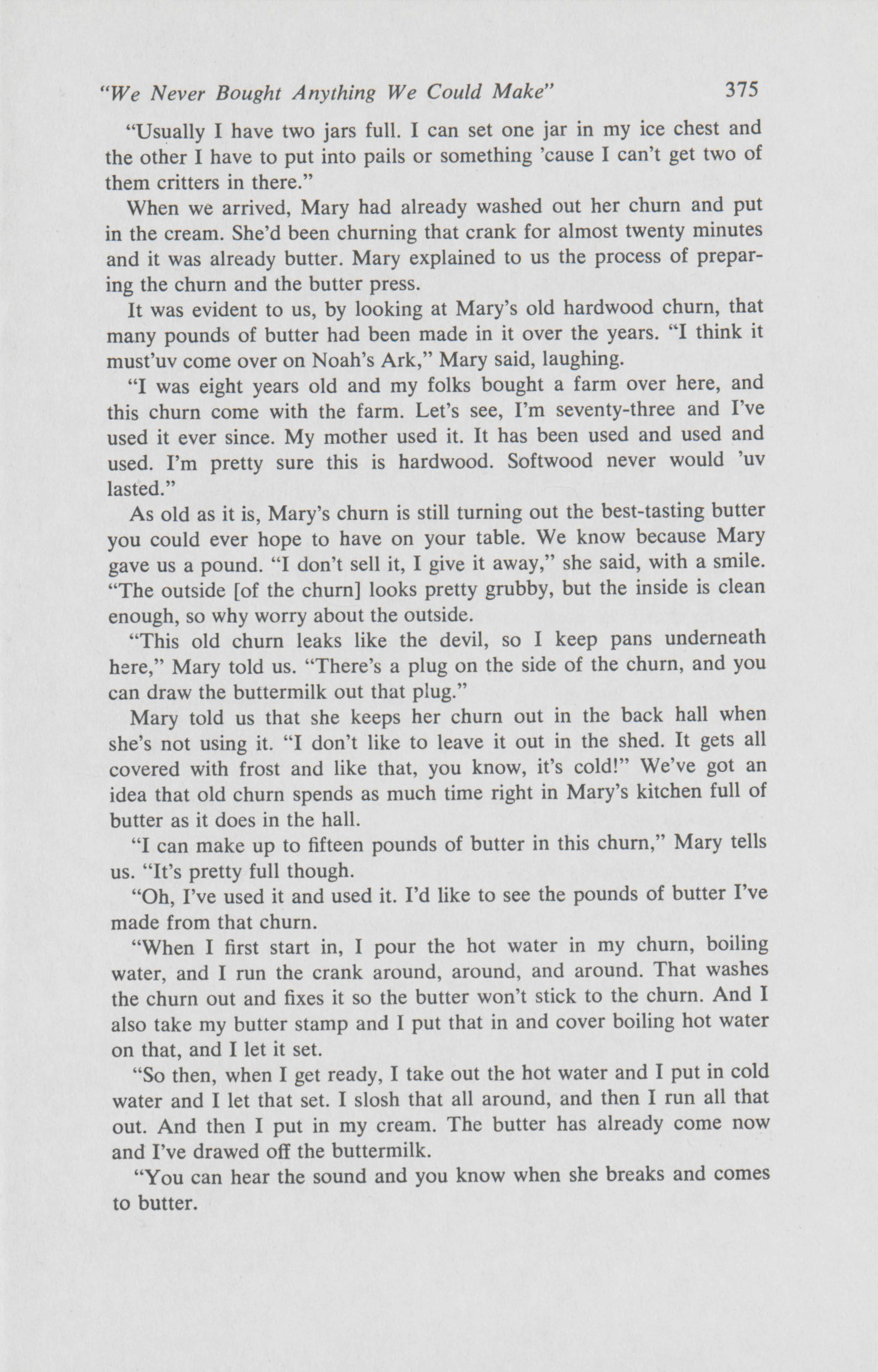 Living out in West Peru, Mary Turner always has stories to share. Kelly Emery visits Turner and learns how to make butter on a churn.