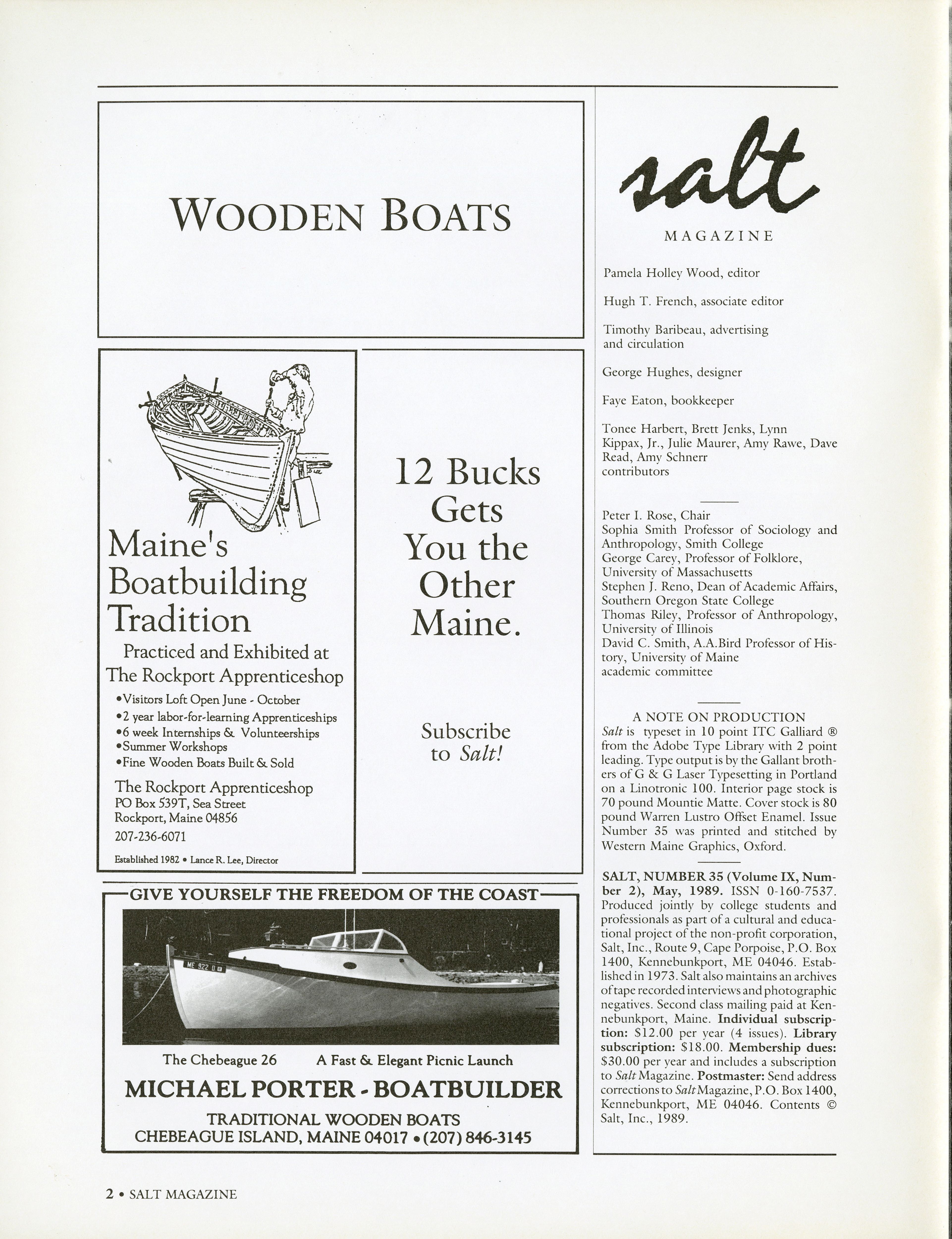 Listing of Salt production staff, contributors, and faculty.
