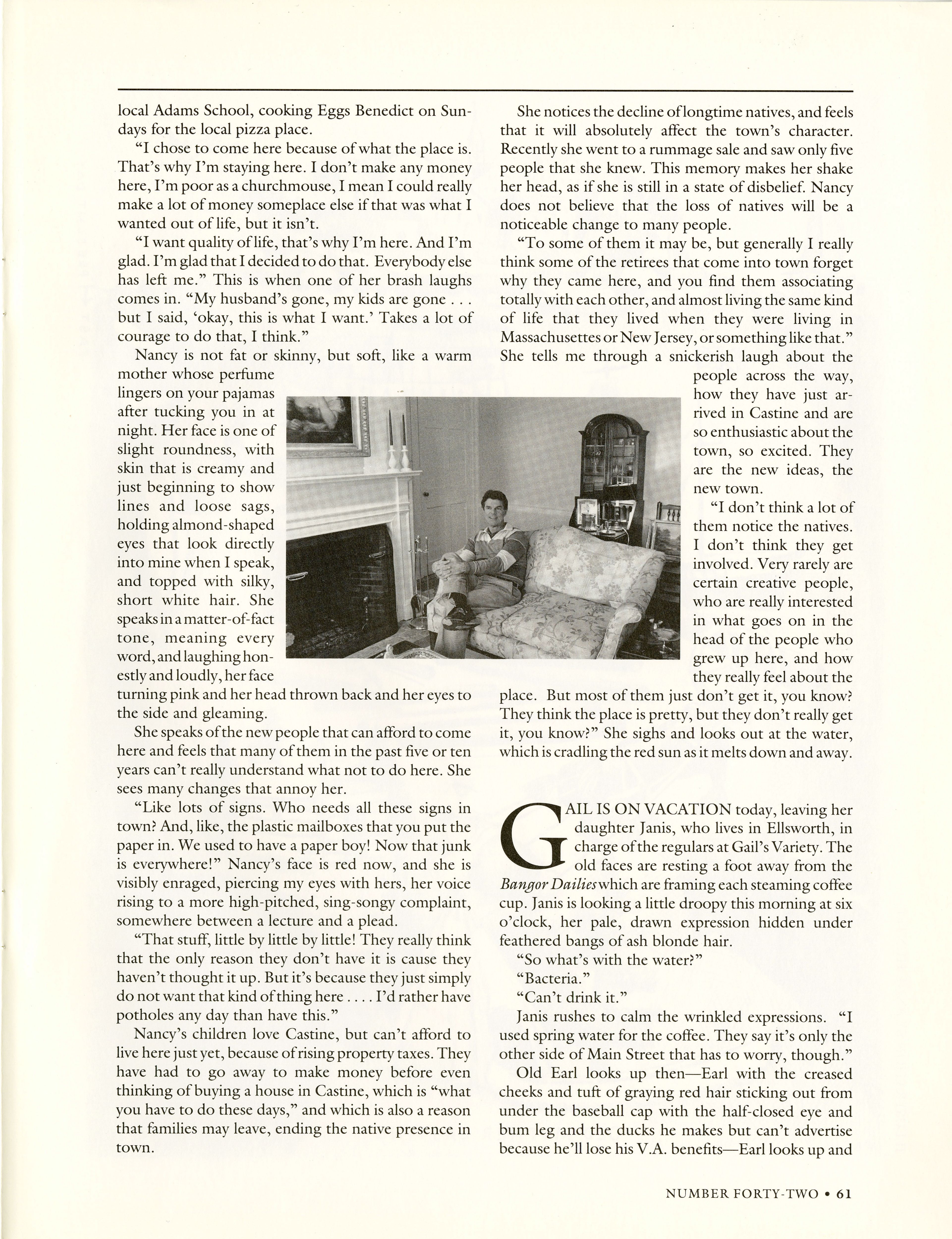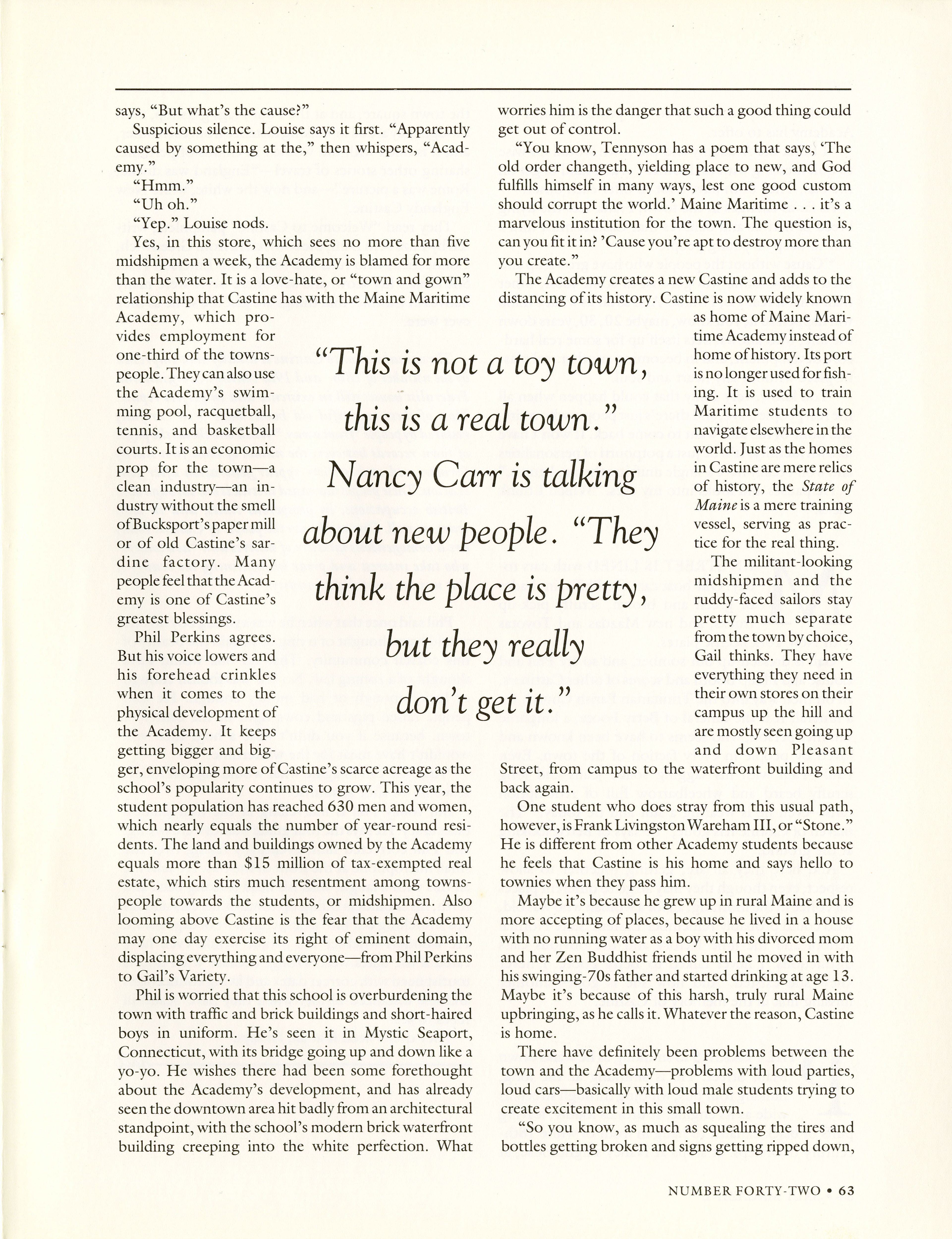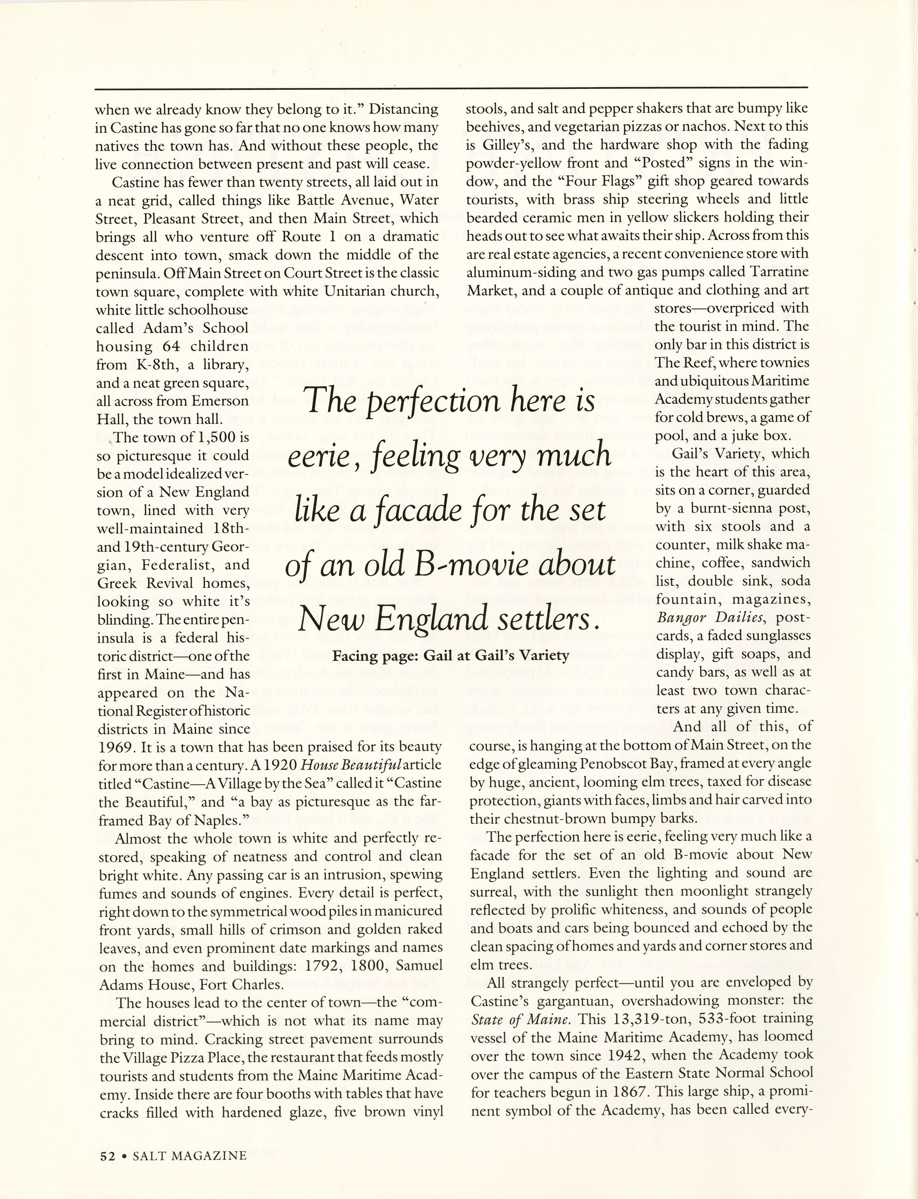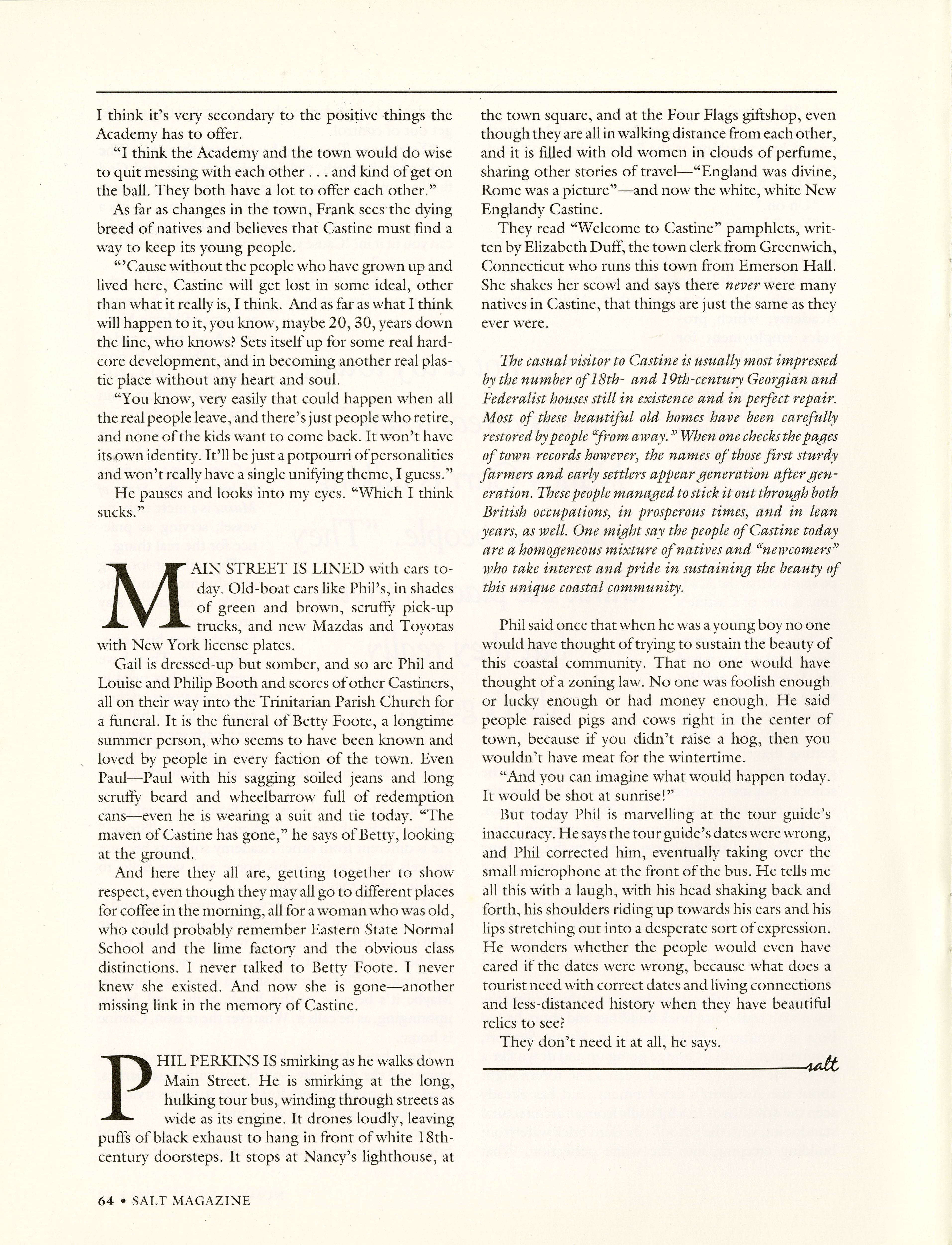 As one of the more picturesquely preserved villages in New England, Beth Greenfield questions what happens when the natives are gone from Castine, Maine. Greenfield explores what happens when a place like Castine when memories of the past are lost.