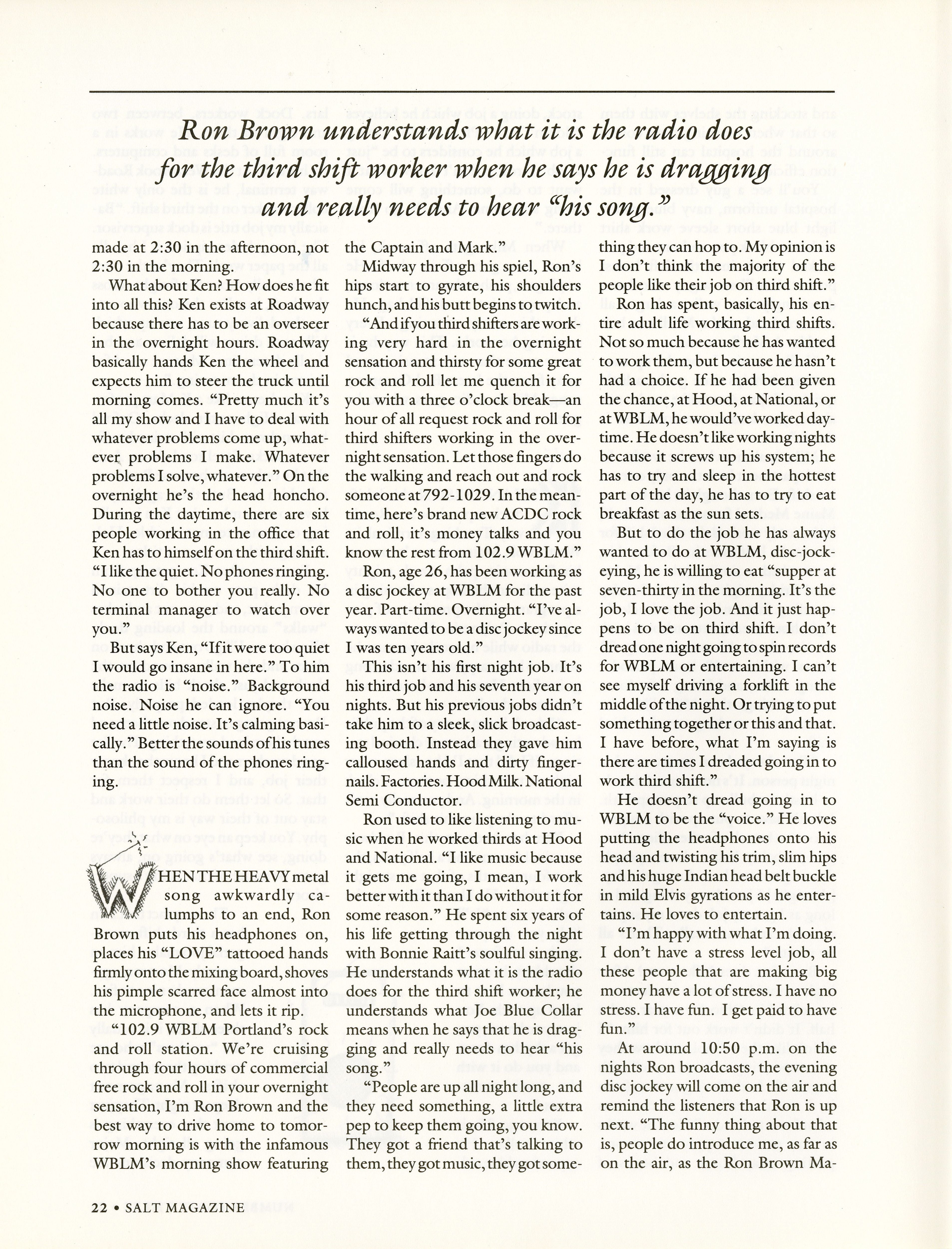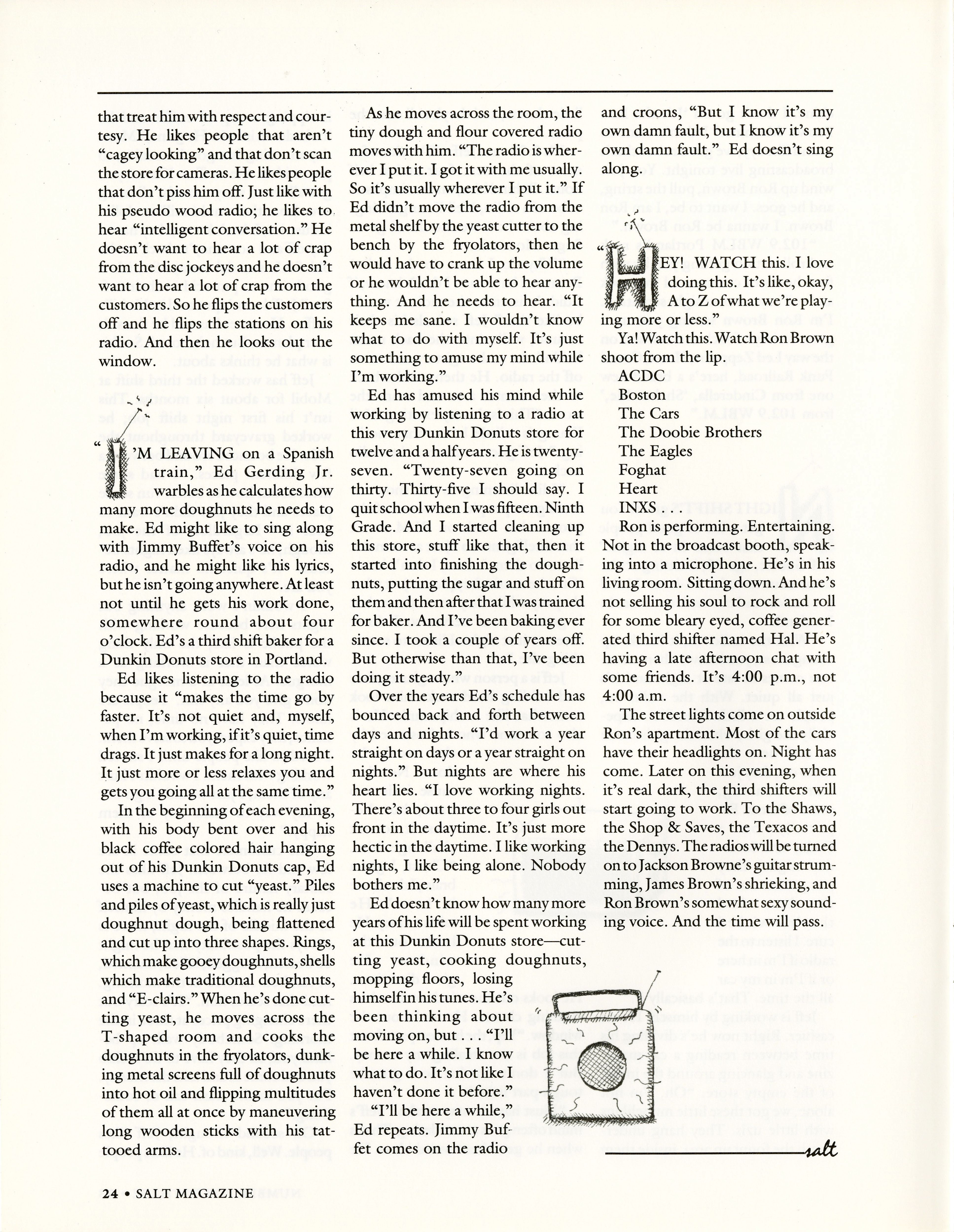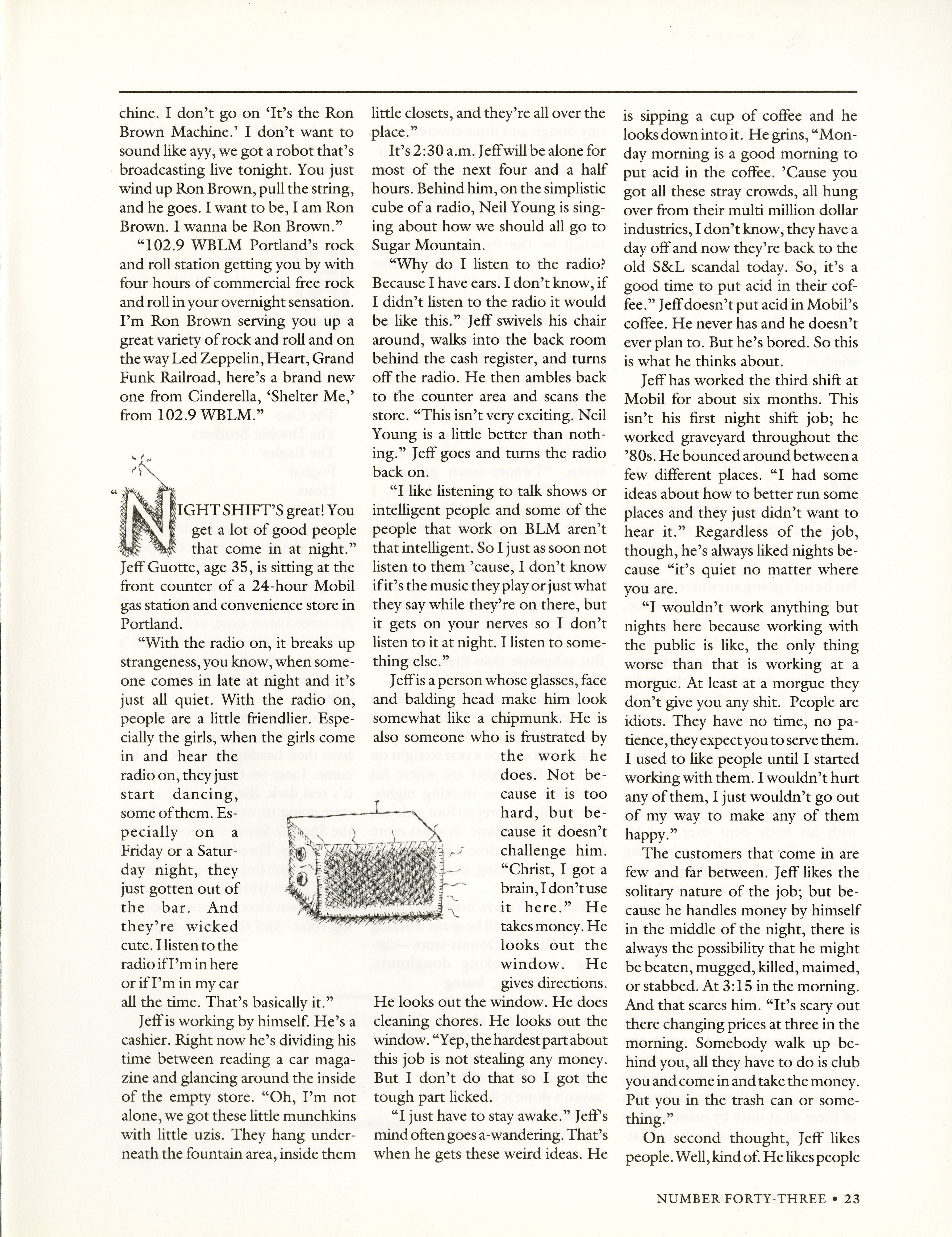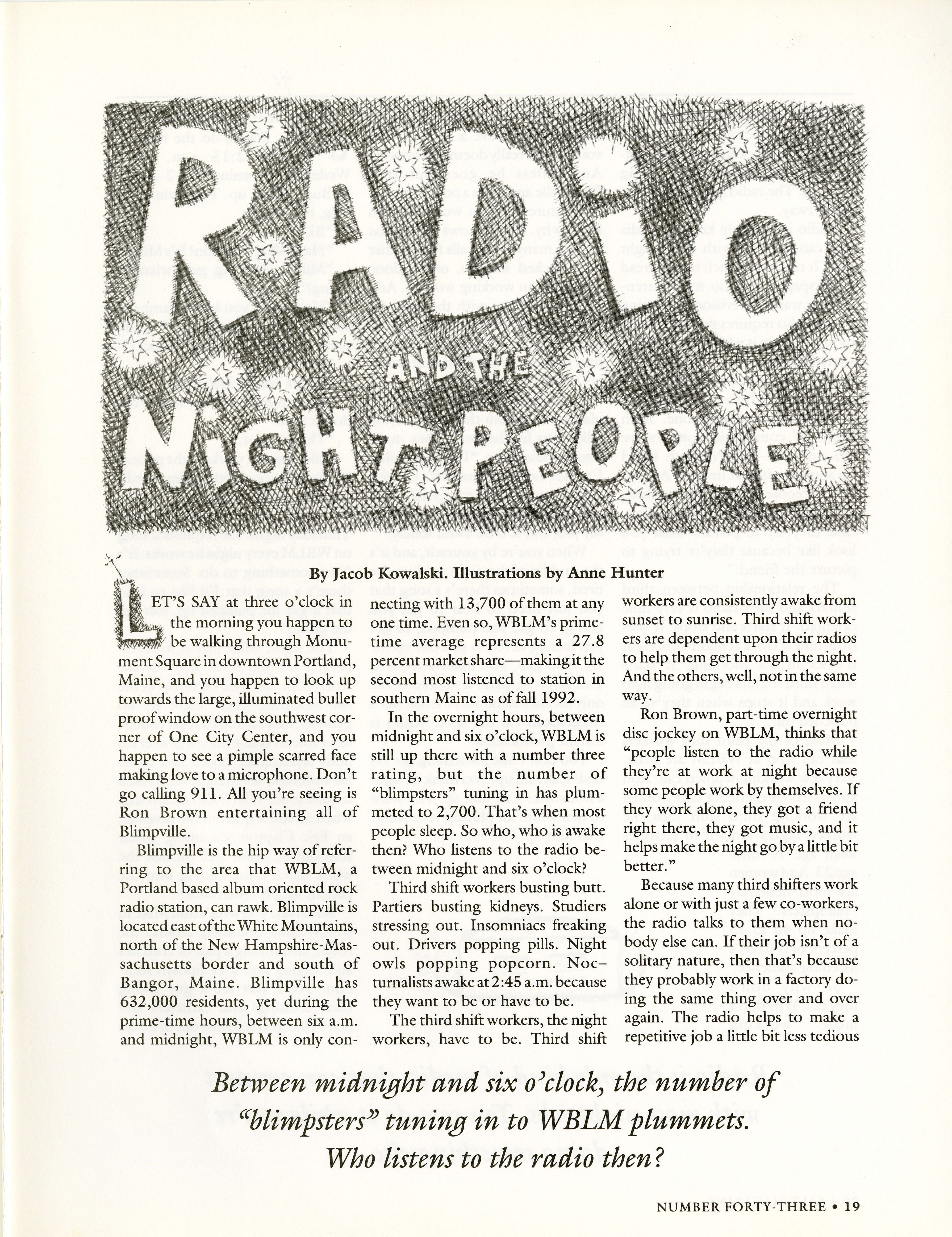 Jacob Kowalski documents the life of working the night shift and radio broadcasting.