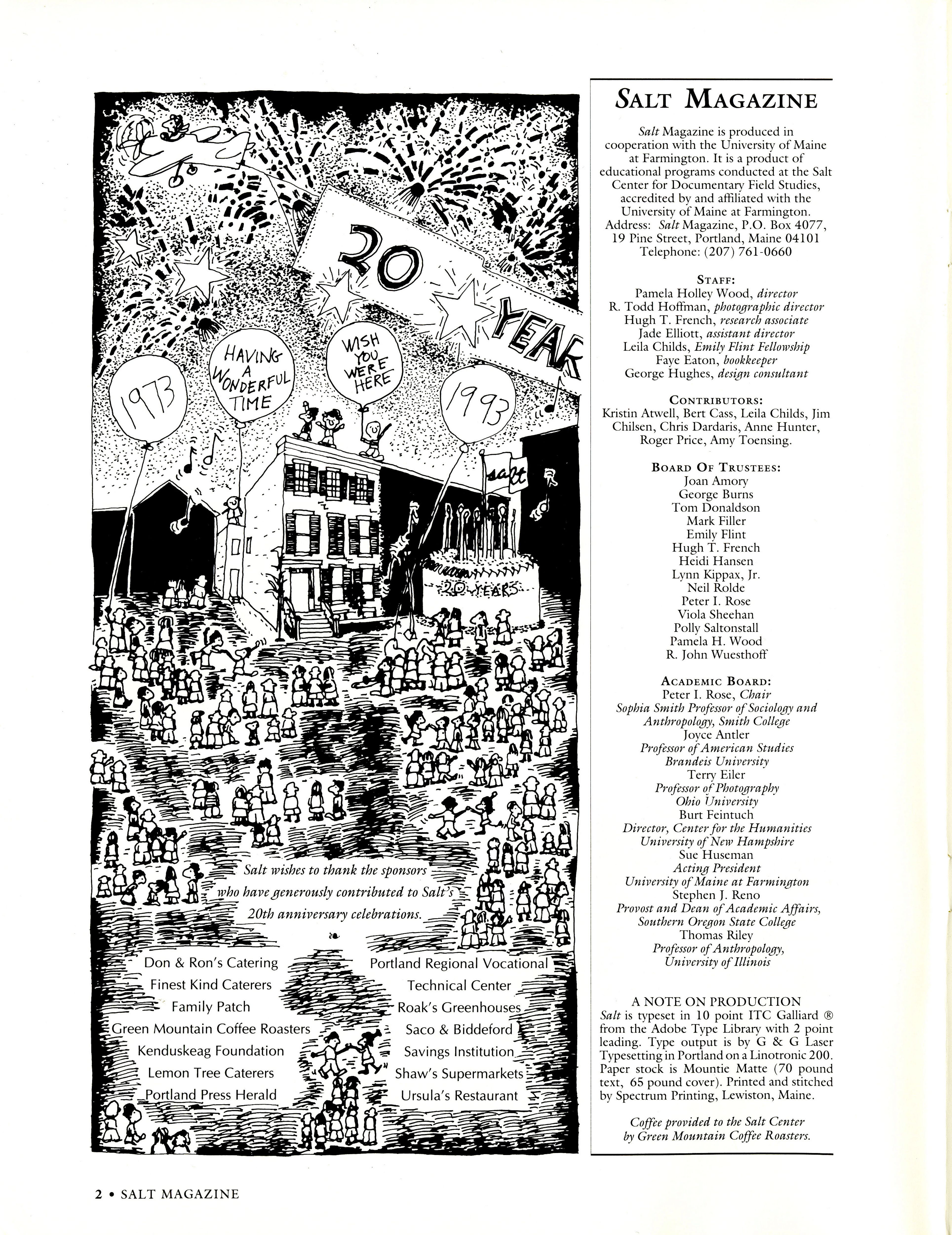 Listing of Salt production staff, contributors, and faculty.