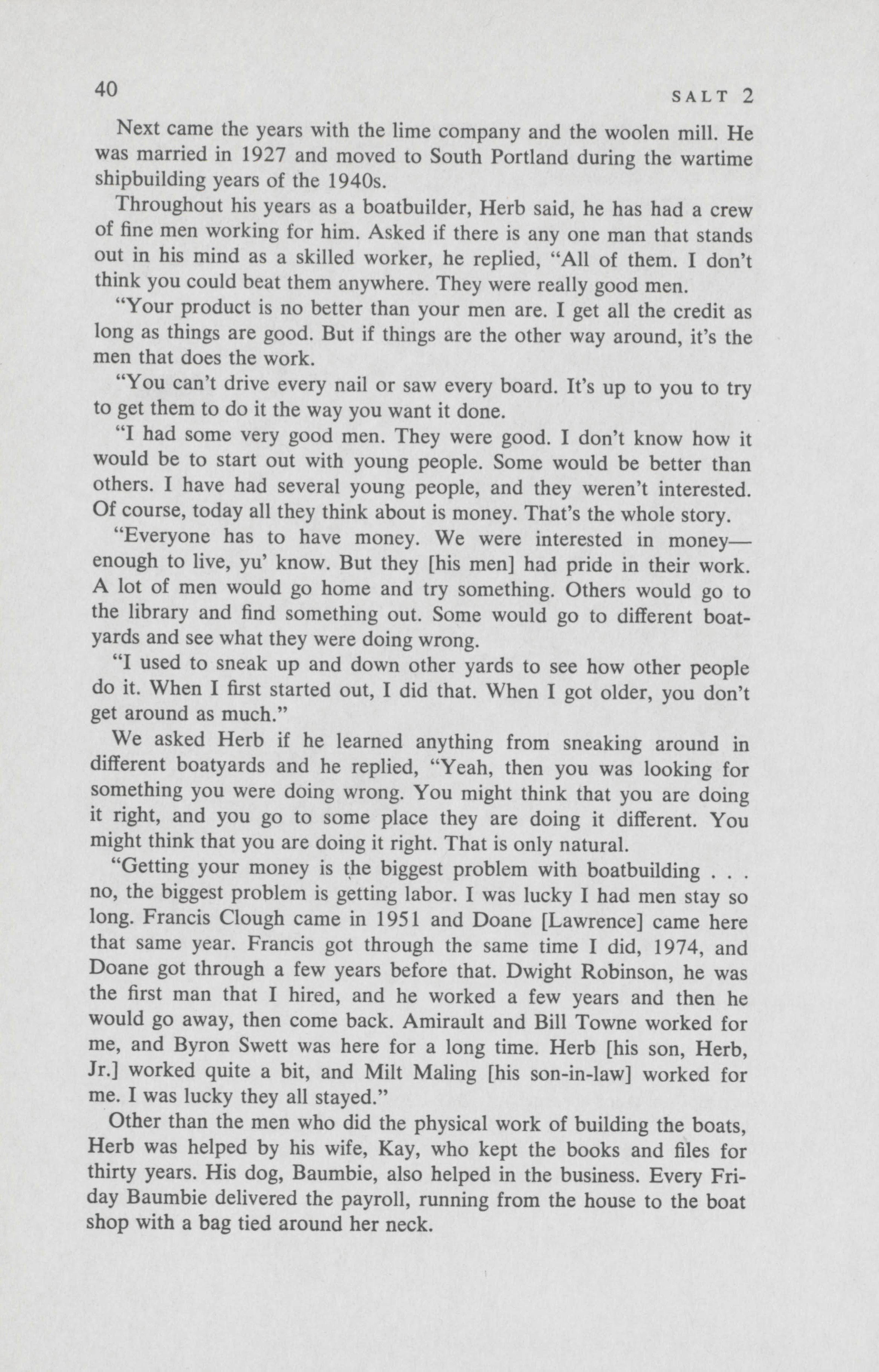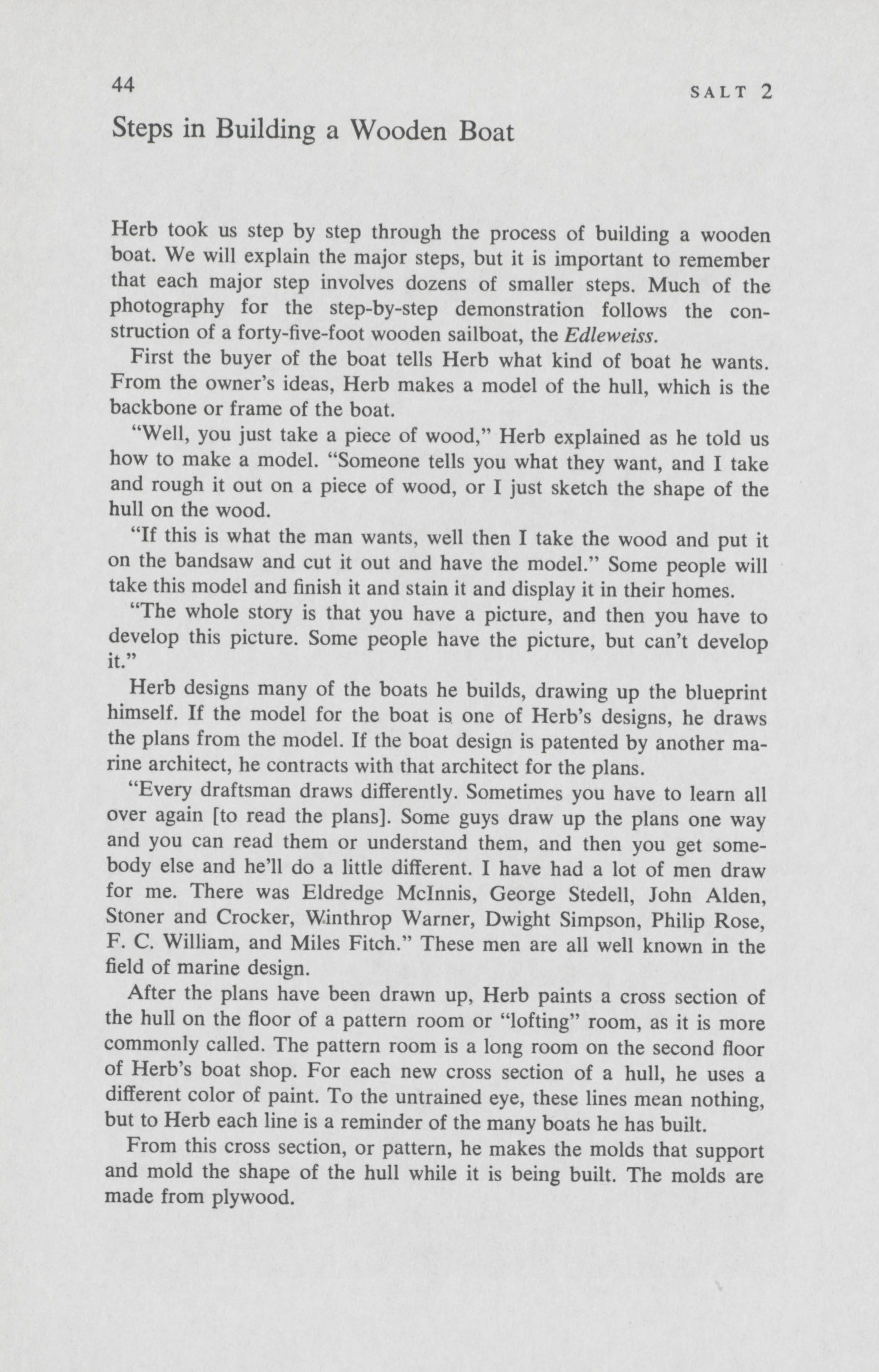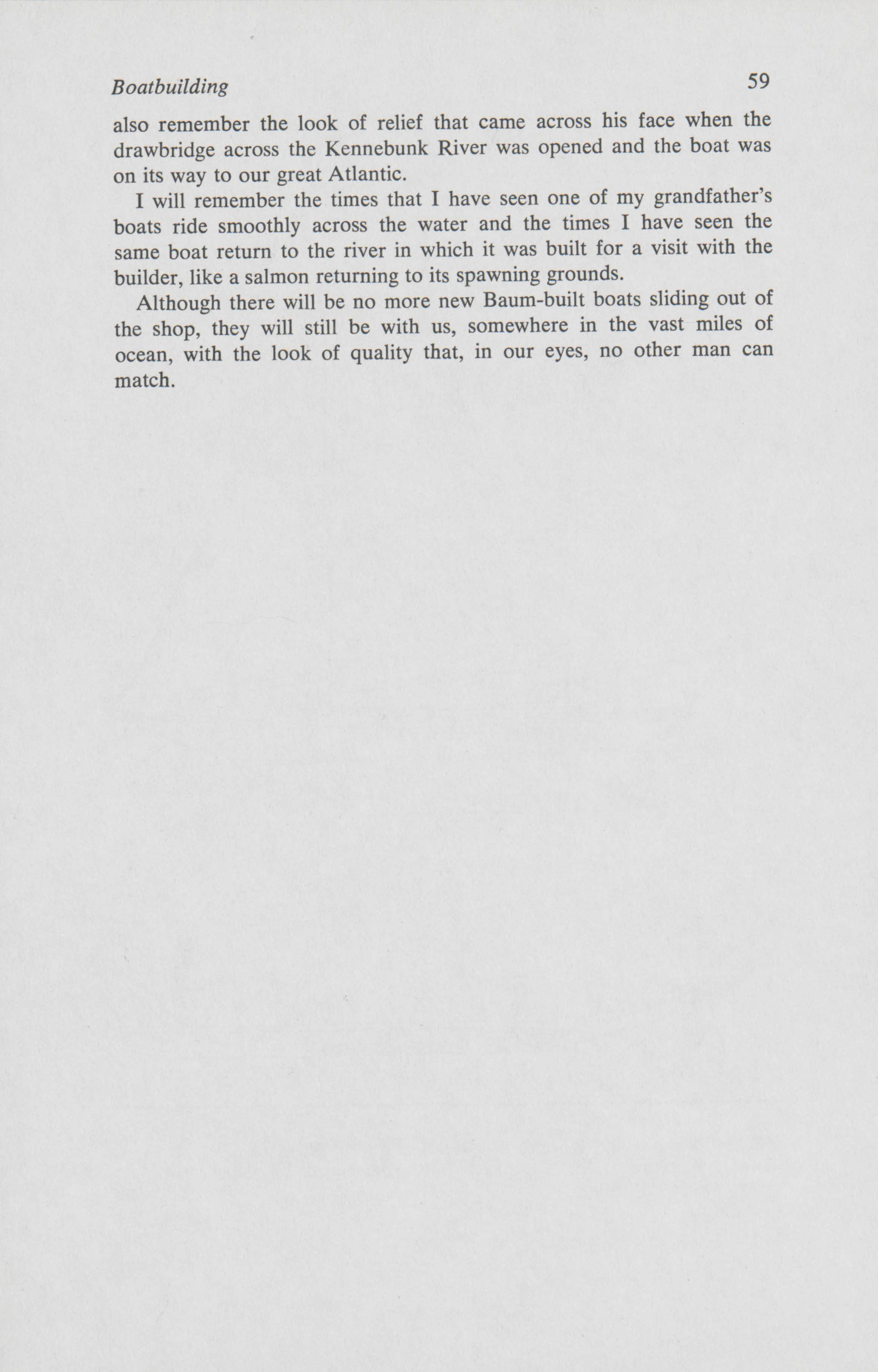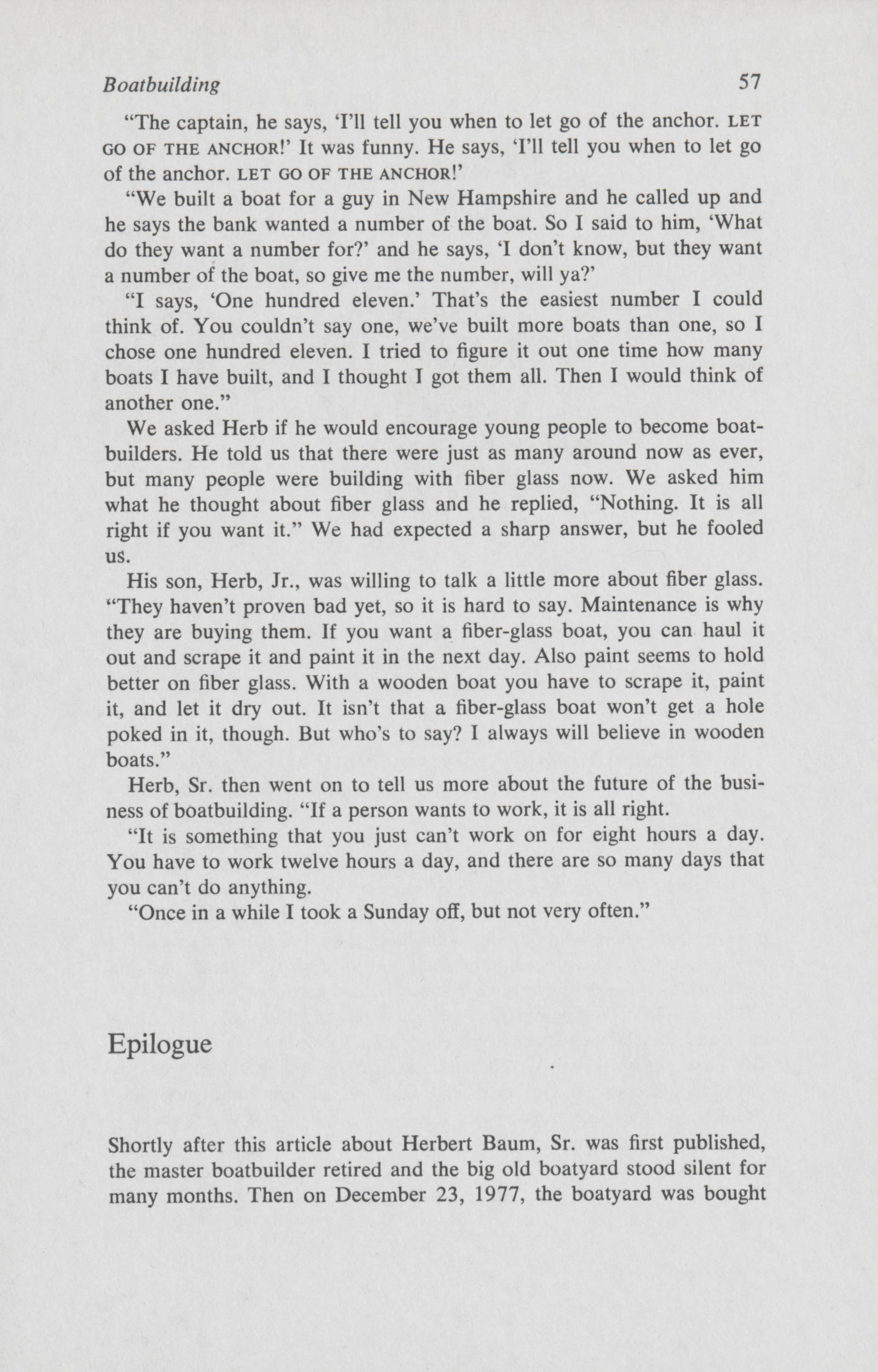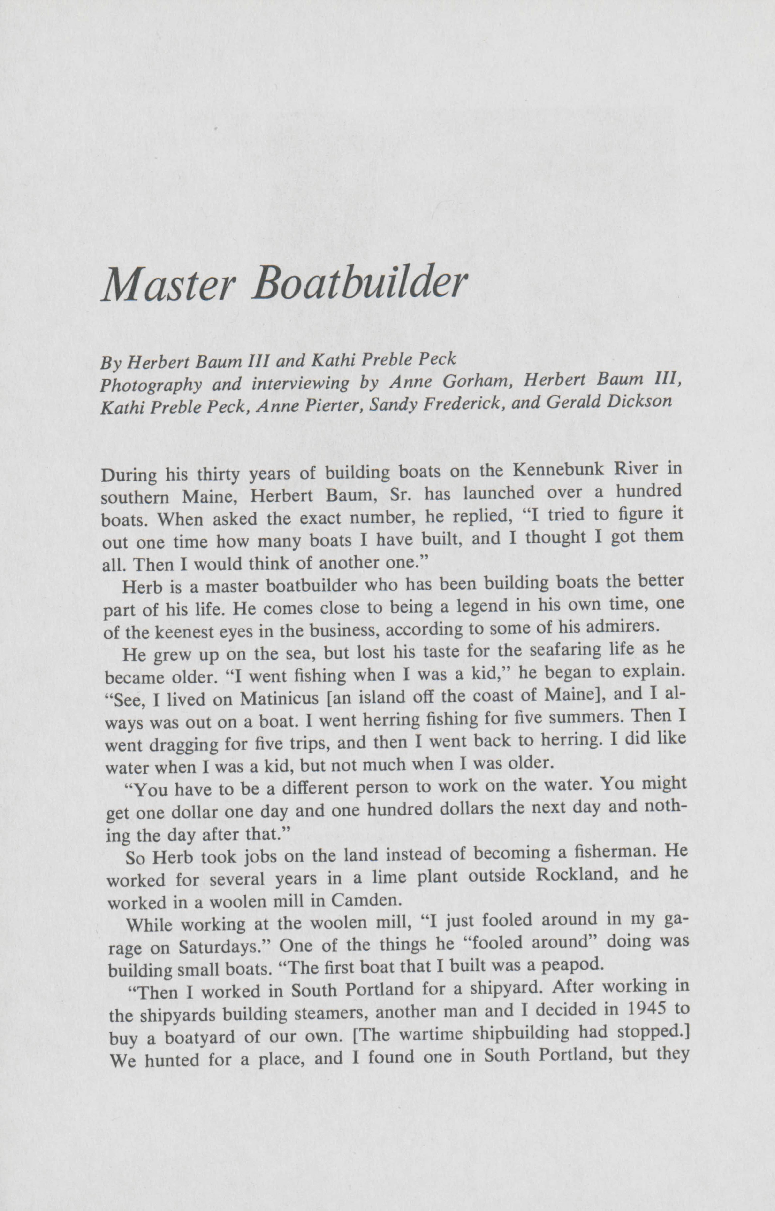 As a master boat builder, Herb Baum, Sr. understands the intricacies of building a boat. Herb Baum III and Kathi Preble document the work that goes into designing and building a boat.