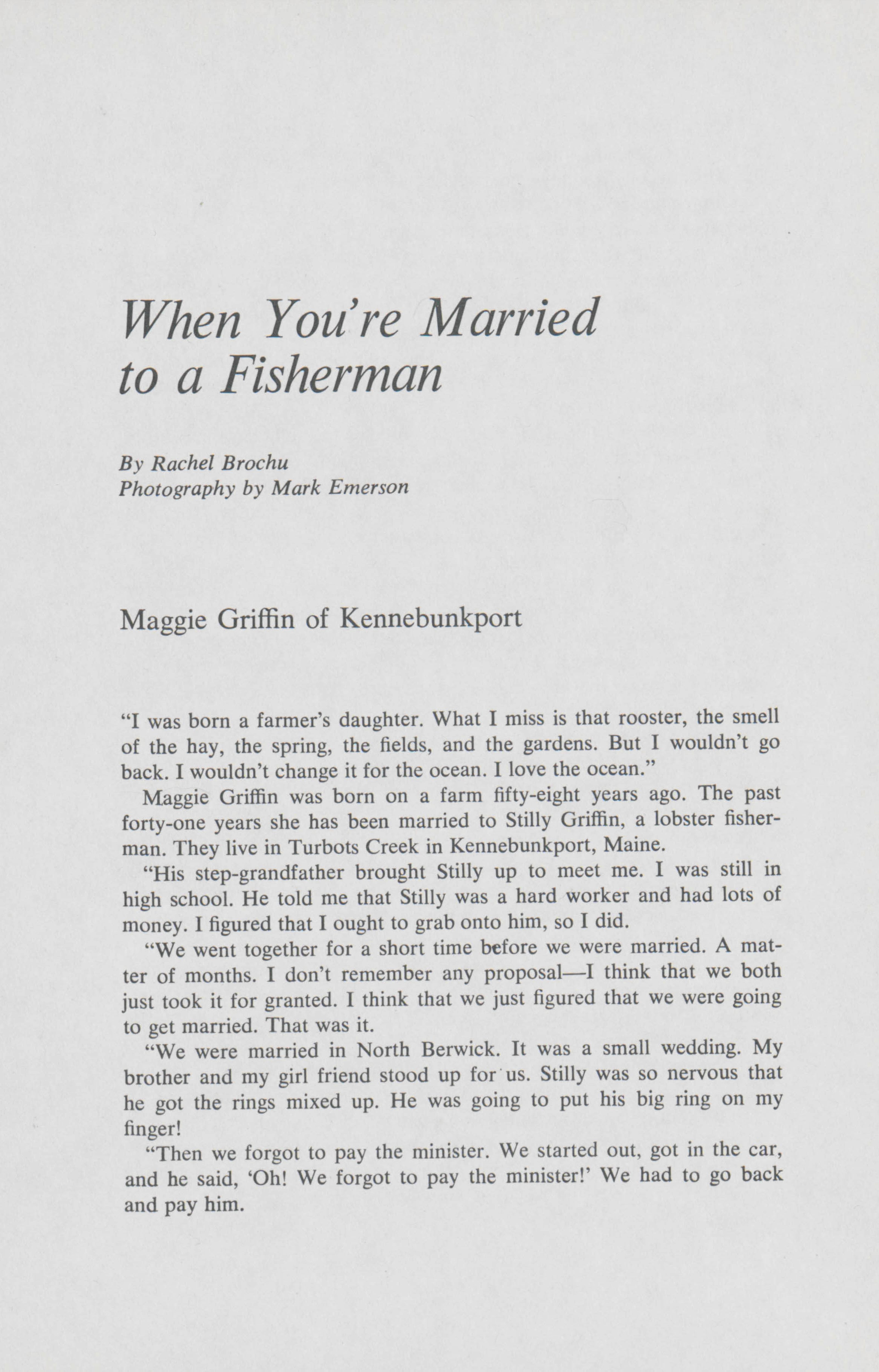 As the wives of fishermen, four women share their stories. Rachel Brochu and others speak to the four wives to learn about unique experiences.
