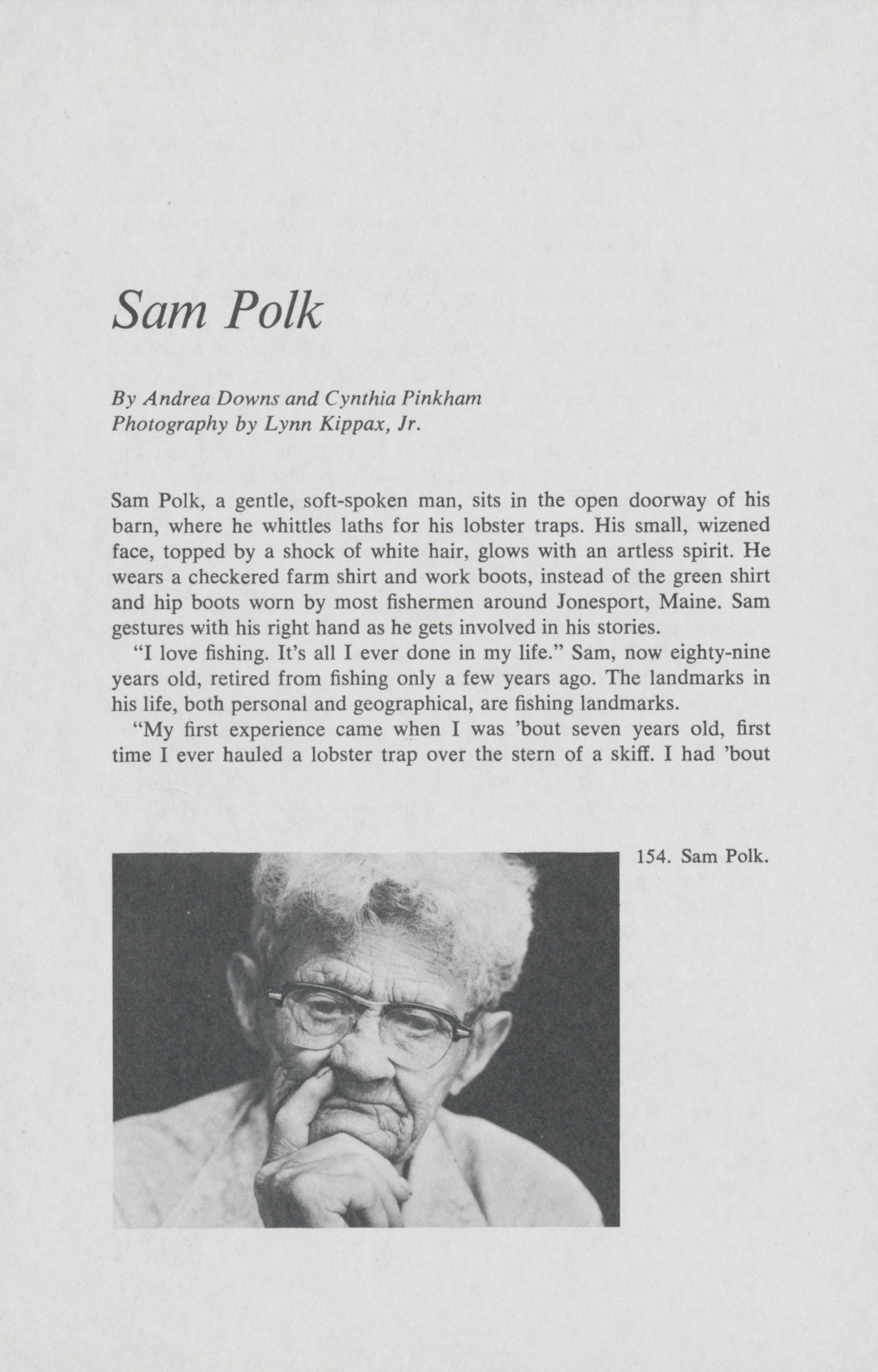 In the Jonesport-Beals Island area, one man has fished more years than most. Andrea Downs and Cindy Pinkham speak to Sam Polk about his love for the sea.