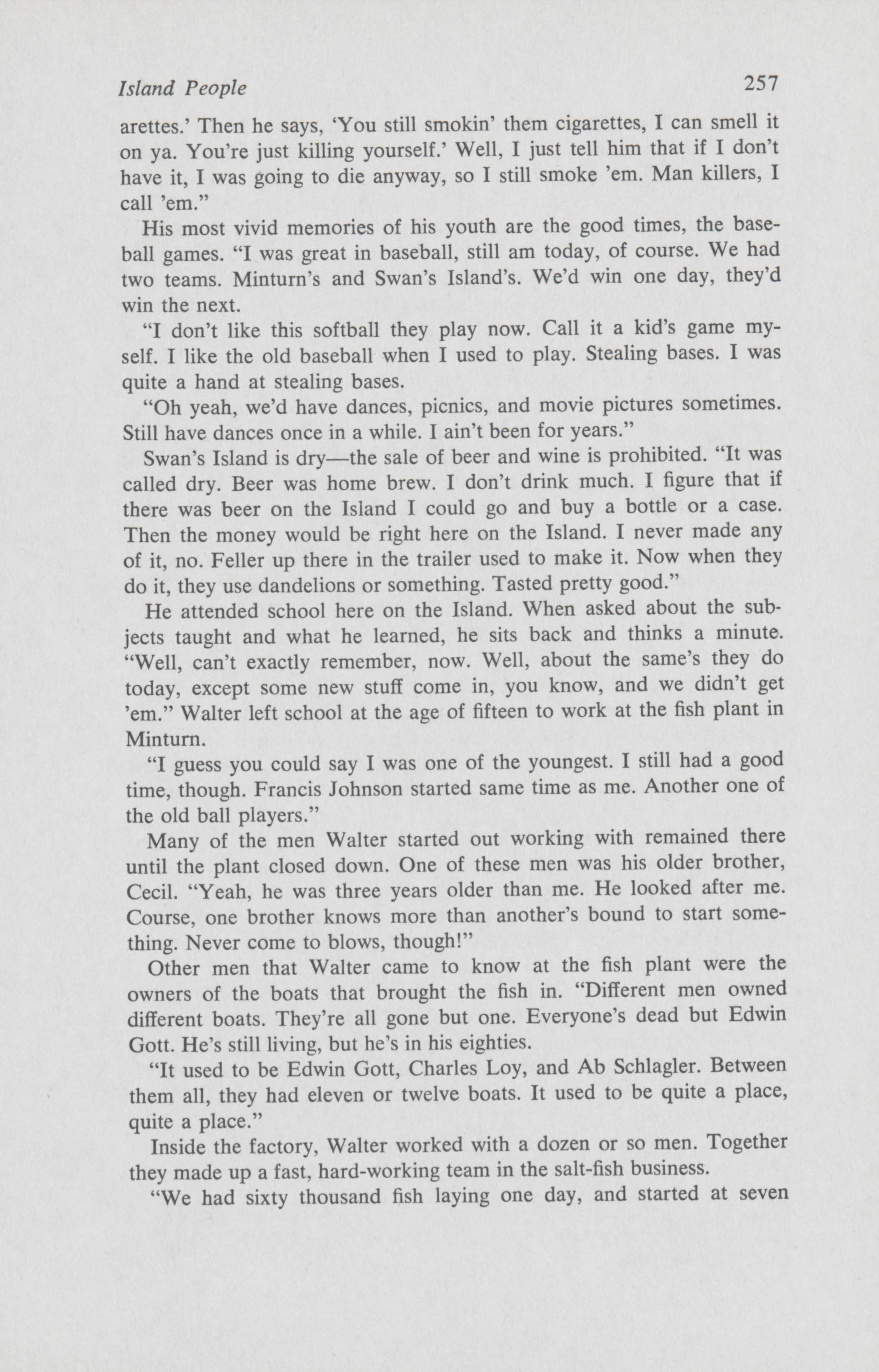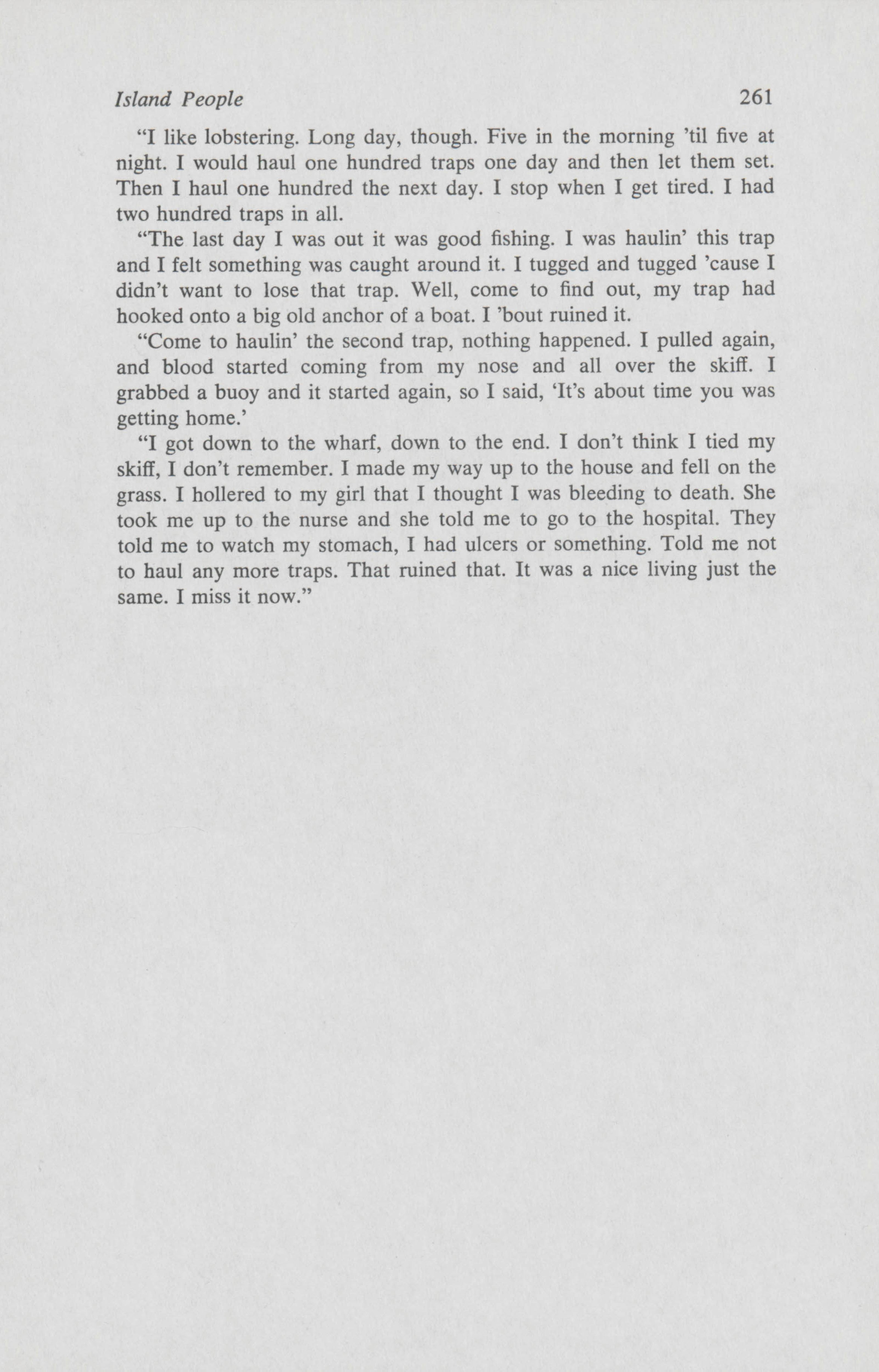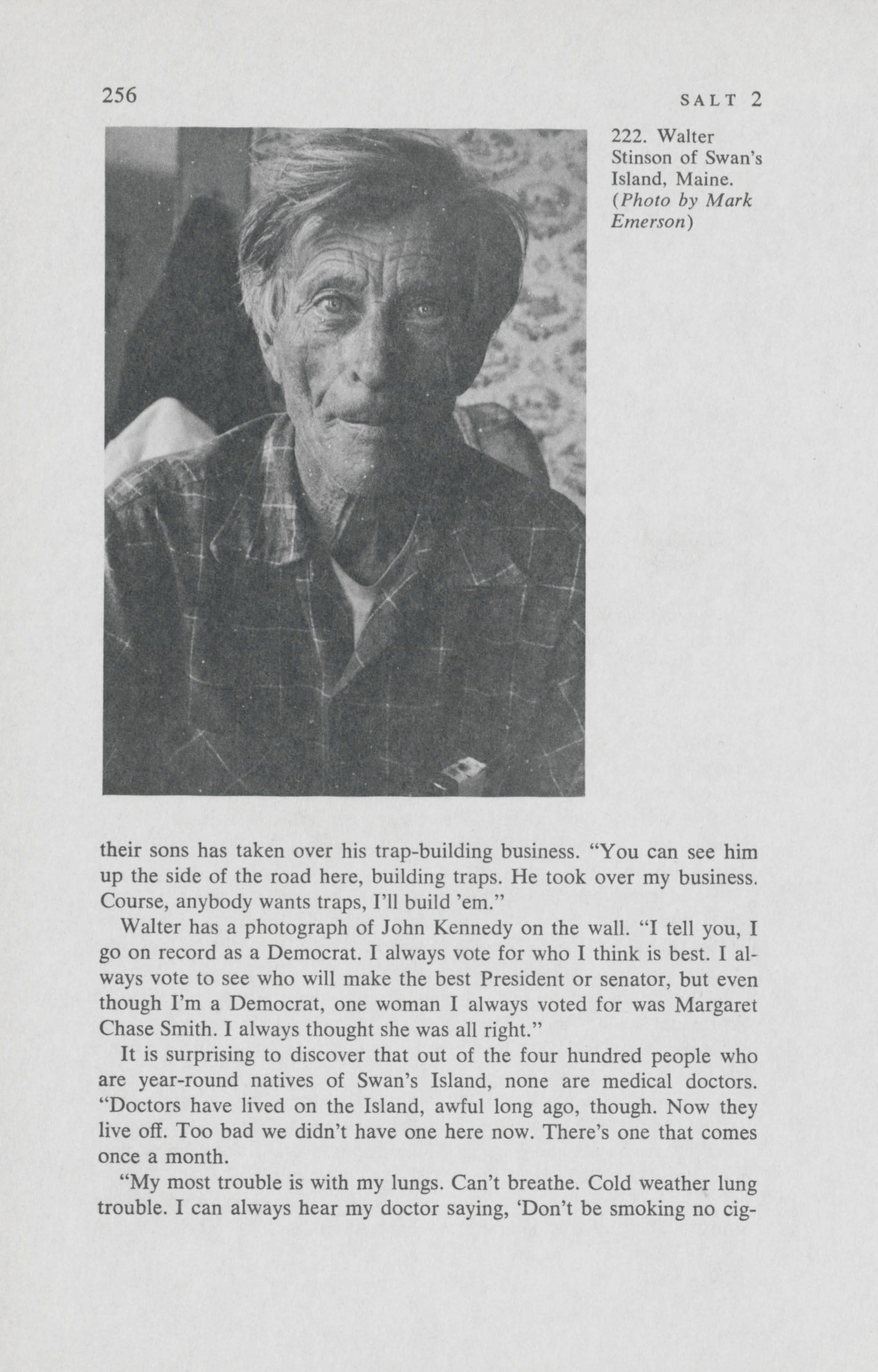 Dottie O'Keefe visits Walter Stinson, a resident of Swan's Island to learn about his life. Stinson speaks about his work as a fisherman and working in a factory.