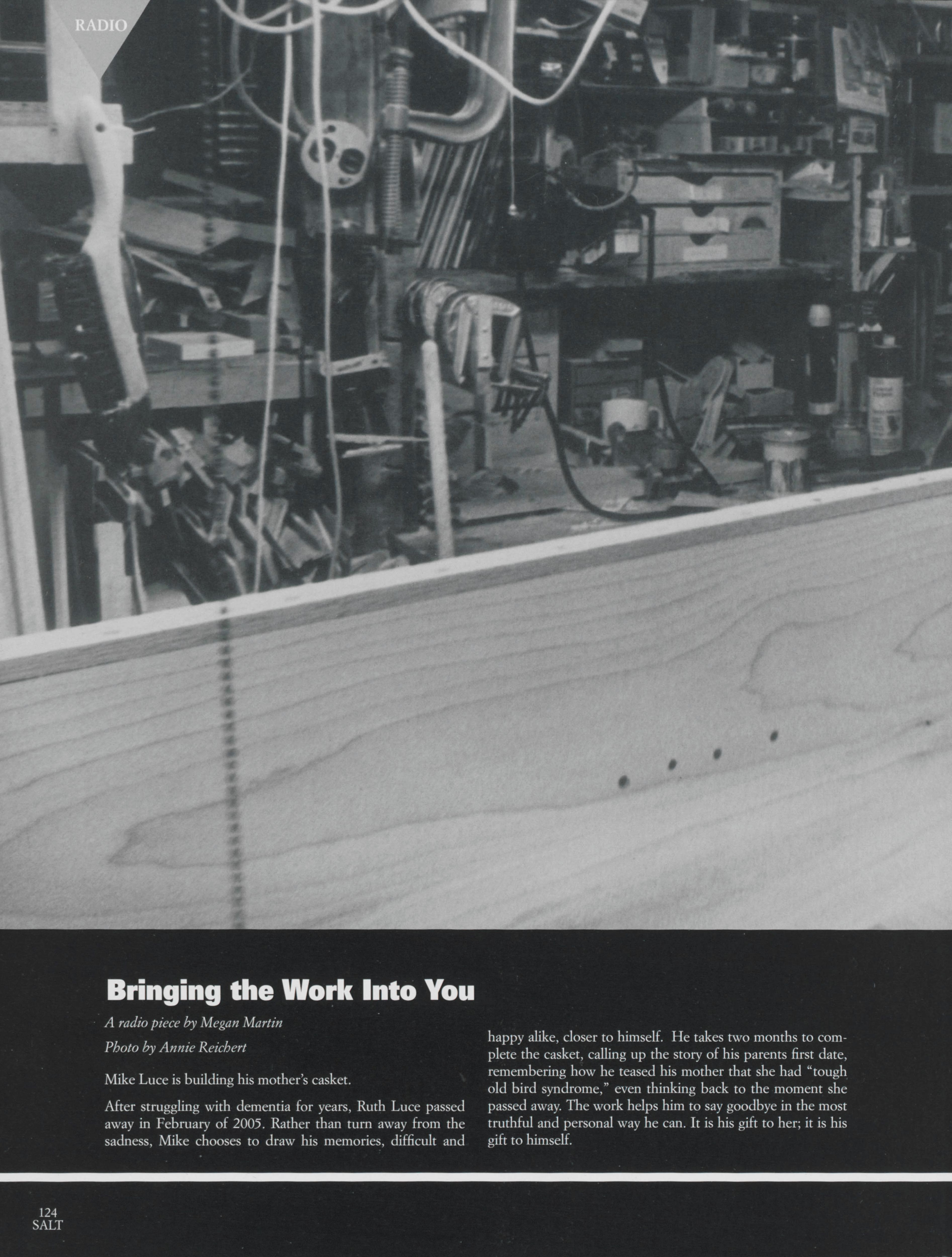 Michael Luce discusses the process of creating a casket for his mother who recently passed away. Luce speaks about the importance of going through the process of crafting the casket himself, and about the life of his mother.