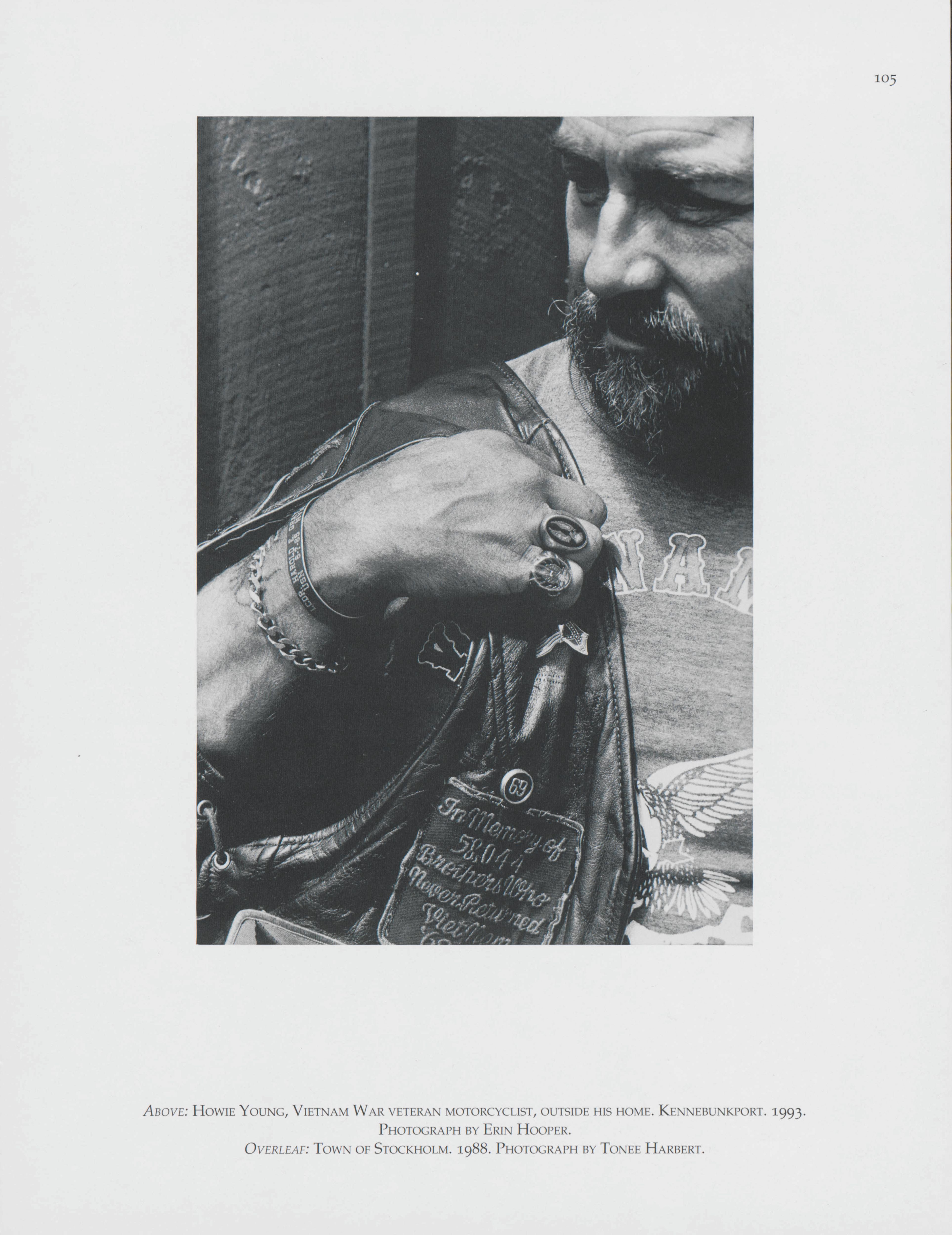 Erin Hooper captures a close up photograph of Vietnam War veteran Howie Young and his biker jacket.