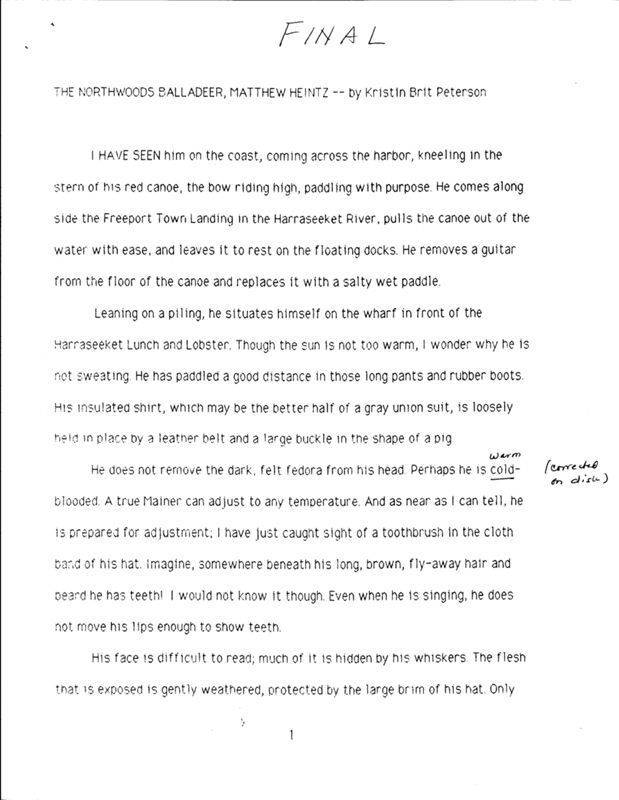 Kristin Petersen documents the life of Matthew Heintz, a musician and performer known as the Northwoods Balladeer.