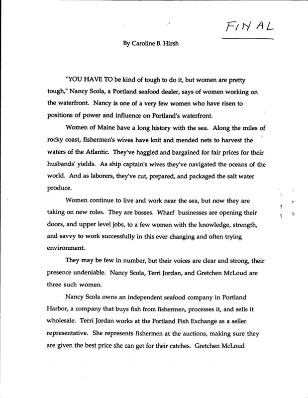 Caroline Hirsh documents the lives of seven women who work on the waterfront. She discusses their jobs and how their businesses were started.