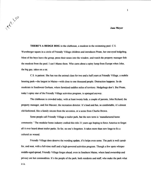 The image that most Americans think of when they hear the term trailer park is not a very appealing one. Jane Stevenson looks at Friendly Village in Gorham as more than just a trailer park, but as a small home community.