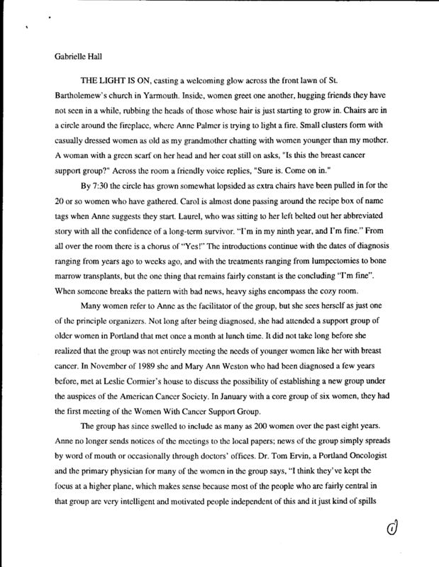 Through a common threat in the form of cancer, several women meet at St. Bartholemew's Church in Yarmouth to share their stories and struggles regarding breast cancer. Gabrielle Hall speaks to women who attend this support group to learn about their stories.