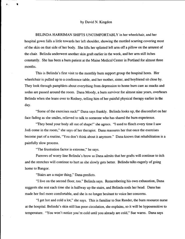 David Kingdon documents the lives of burn survivors and their experiences through rehabilitation.