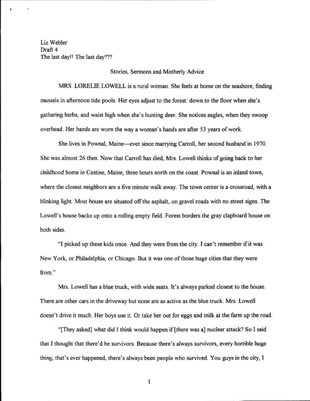 Liz Webler documents the life of Lorelie Lowell, discussing her rural lifestyle and hobbies.