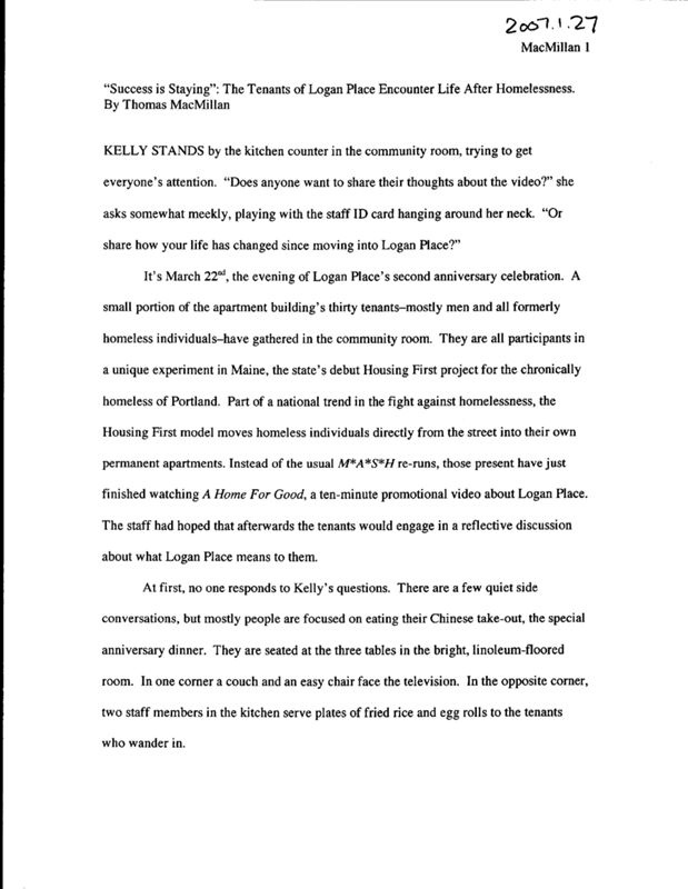In an effort to assist the homeless population of Portland, Logan Place offers homeless individuals their own permanent apartments, and a way to turn their lives around. Thomas MacMillan explores how Logan Place took in the hardest cases of homelessness and what the program does for the residents to make their lives better.