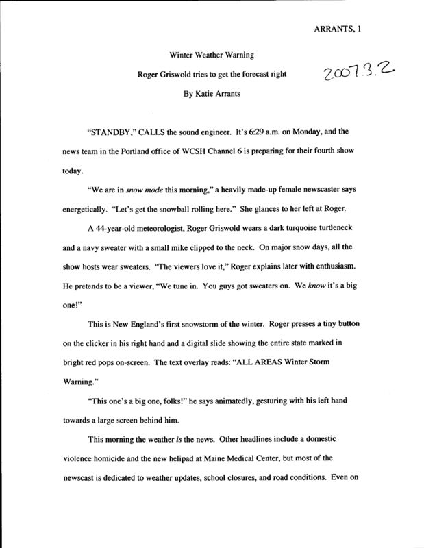 Every morning on WCSH Channel 6, Roger Griswold provides viewers in Portland with the weather forecast. Katie Arrants highlights how Griswold takes pride in his job, and his desire to be as accurate as possible, especially when it comes to winter storms.