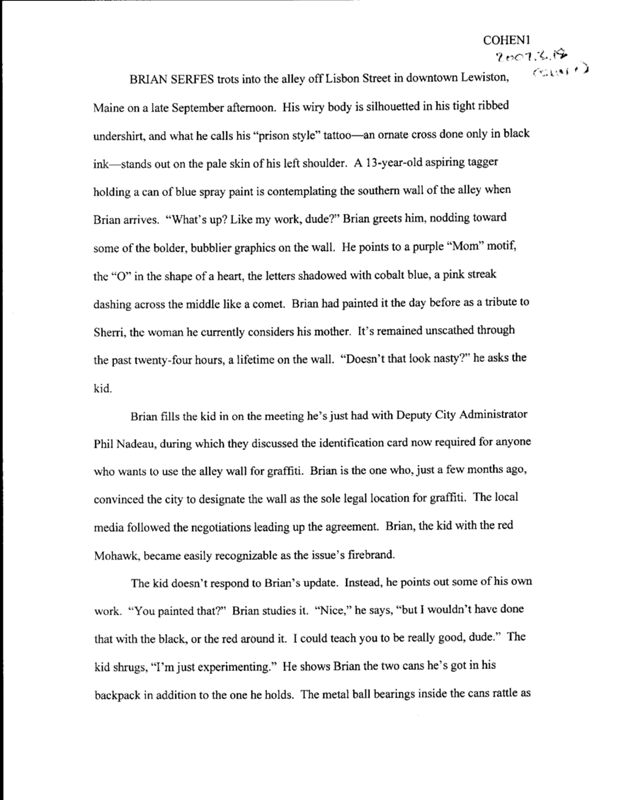 In an effort to solve the graffiti issues in Lewiston, the city designated an specific area for artists to tag and paint, while outreach groups commissioned artists. Rebecca Cohen discusses the topic of graffiti with Brian Serfes, who became the face of graffiti in Lewiston, about his attitudes towards this form of art, and law enforcement.