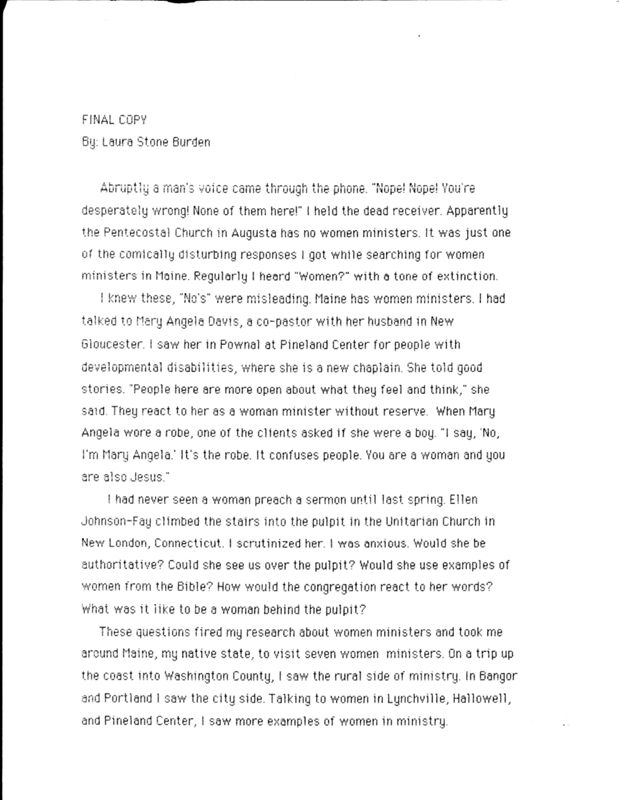 Laura Burden explores the lives of women who are ministers in Maine, in both city and rural ministries.