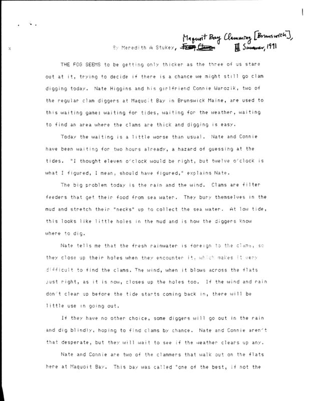 Clam digging in Maquoit Bay is a waiting game based on the weather and tides. Meredith Stukey investigates the trade of clamdigging and clam industry by speaking with individuals who hunt for clams in Maquoit Bay.