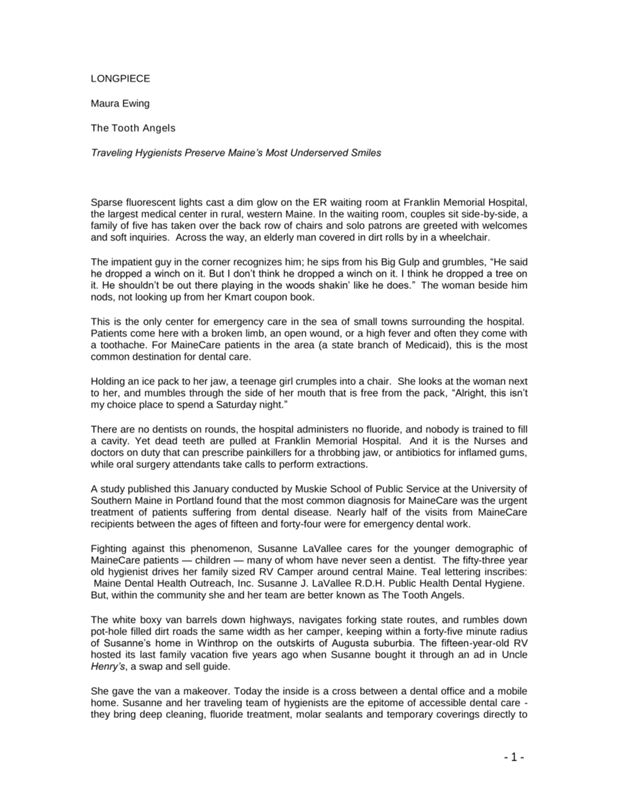 In an effort to fight against a trend of dental work being done in hospital emergency rooms, Susanne LaVallee uses her mobile clinic for oral health education and prevenative care. Maura Ewing highlights the work that LaVallee does for rural and low-income areas of Maine with her team of dental hygenists.