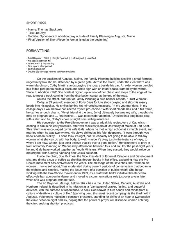 During the 40 days of Lent, protesters stand outside of the Family Planning clinic in Augusta, demonstrating the divide between a woman's right to choose. Thomas Stackpole speaks to Colby Martin, a protester, regarding his beliefs on abortion and the message of 40 Days for Life.