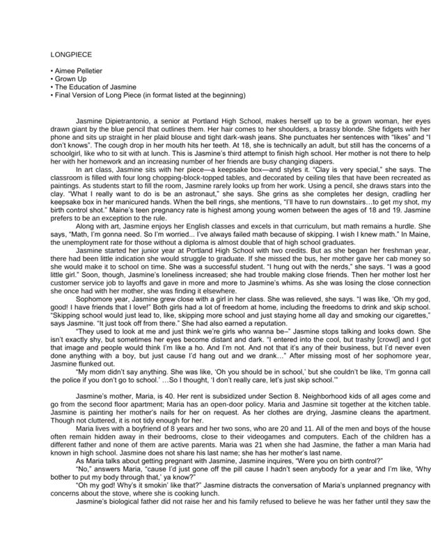 A senior at Portland High School, Jasmine Dipietrantonio is attempting to graduate for the third time. Aimee Pelletier highlights how Dipietrantonio has struggled with school and her family life, but is now taking Accelerated Credit Option classes to complete her high school degree.