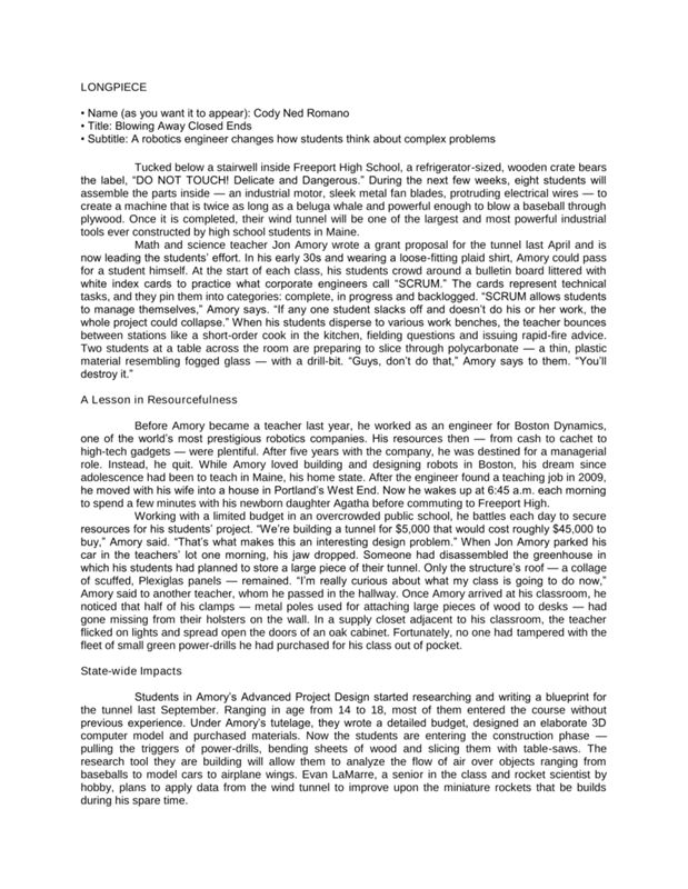 At Freeport High School, students are learning the intricacies of engineering to build various machines, including a wind tunnel. Cody Romano documents the efforts these students put into the projects, and discusses how their teacher, Jon Amory, got involved with his teaching methods.