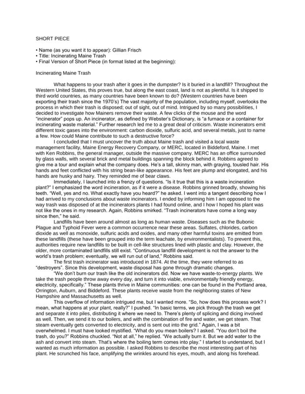 In an effort to understand how Maine disposes of its trash, Gillian Frisch investigates how Maine is capable of buring its trash while remaining environmentally friendly. Frisch speaks to Ken Robbins, general manager of the Maine Energy Recovery Company, about the work that they do there for waste removal.