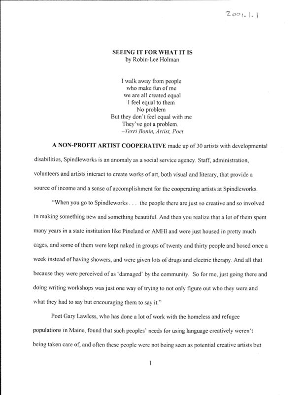 Creativity can be found in all places, as Robin-Lee Holman discusses regarding Spindleworks, a non-profit artist cooperative made up of artists with developmental disabilities. Holman speaks to artists regarding Spindleworks and their experiences.
