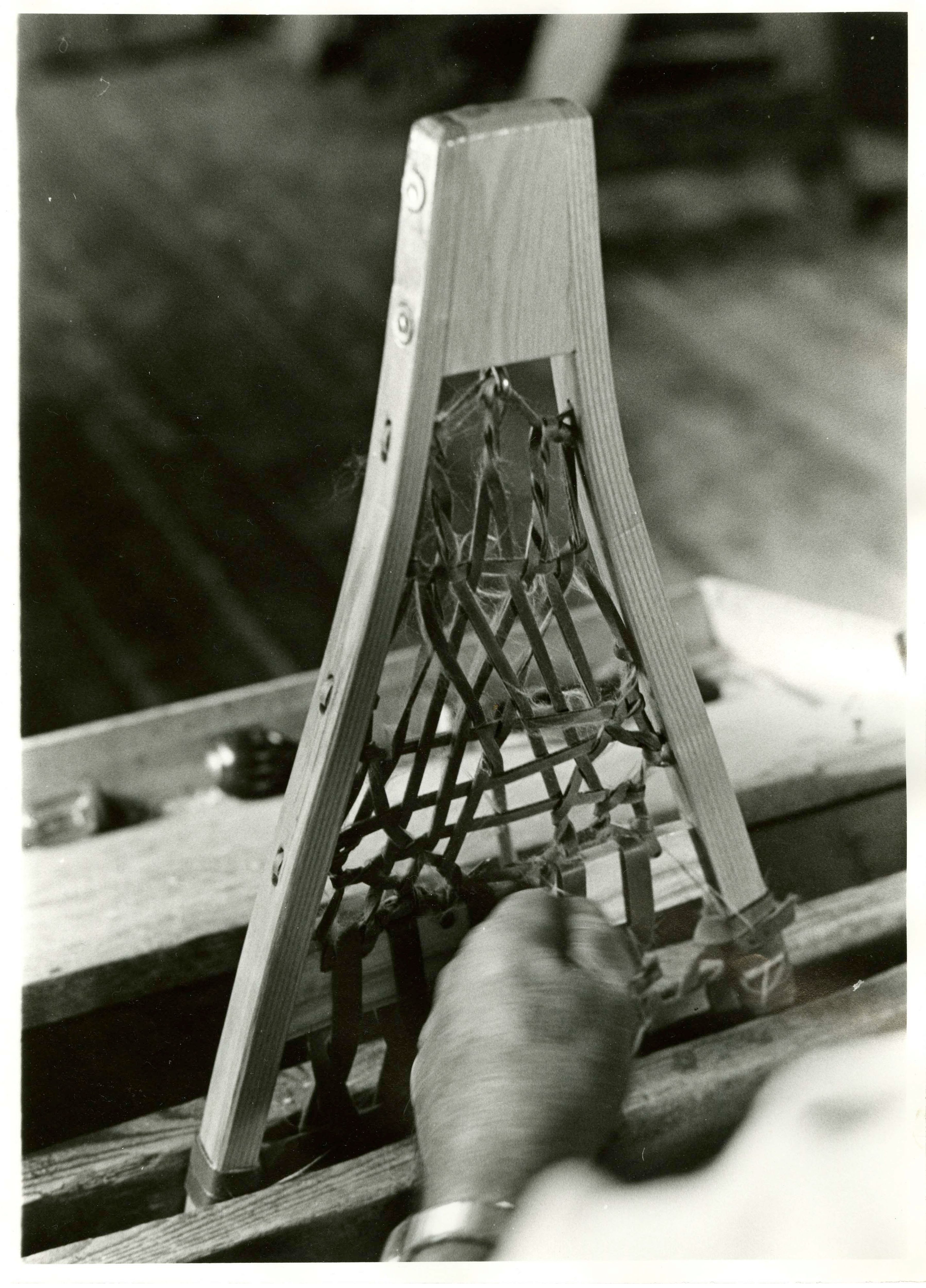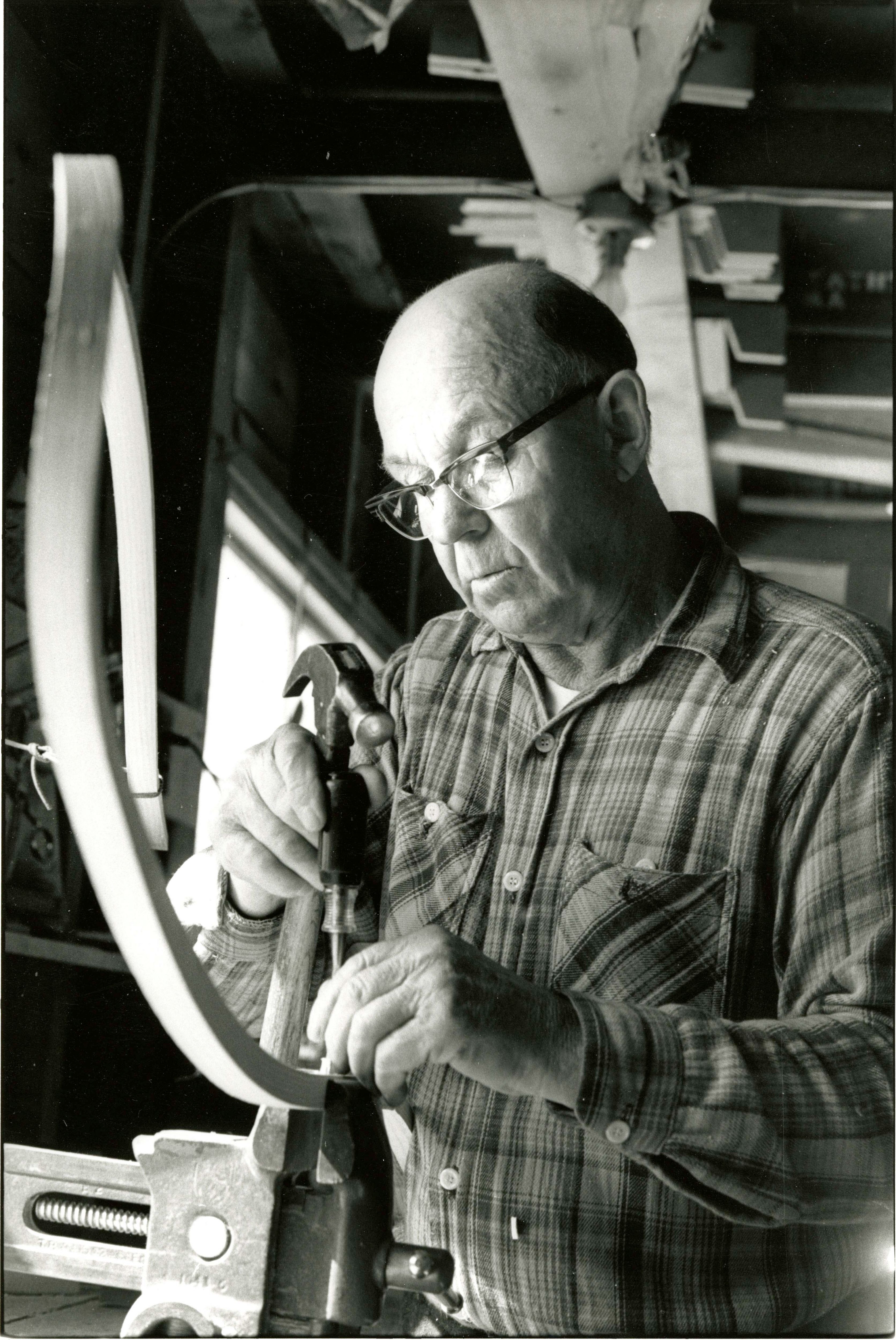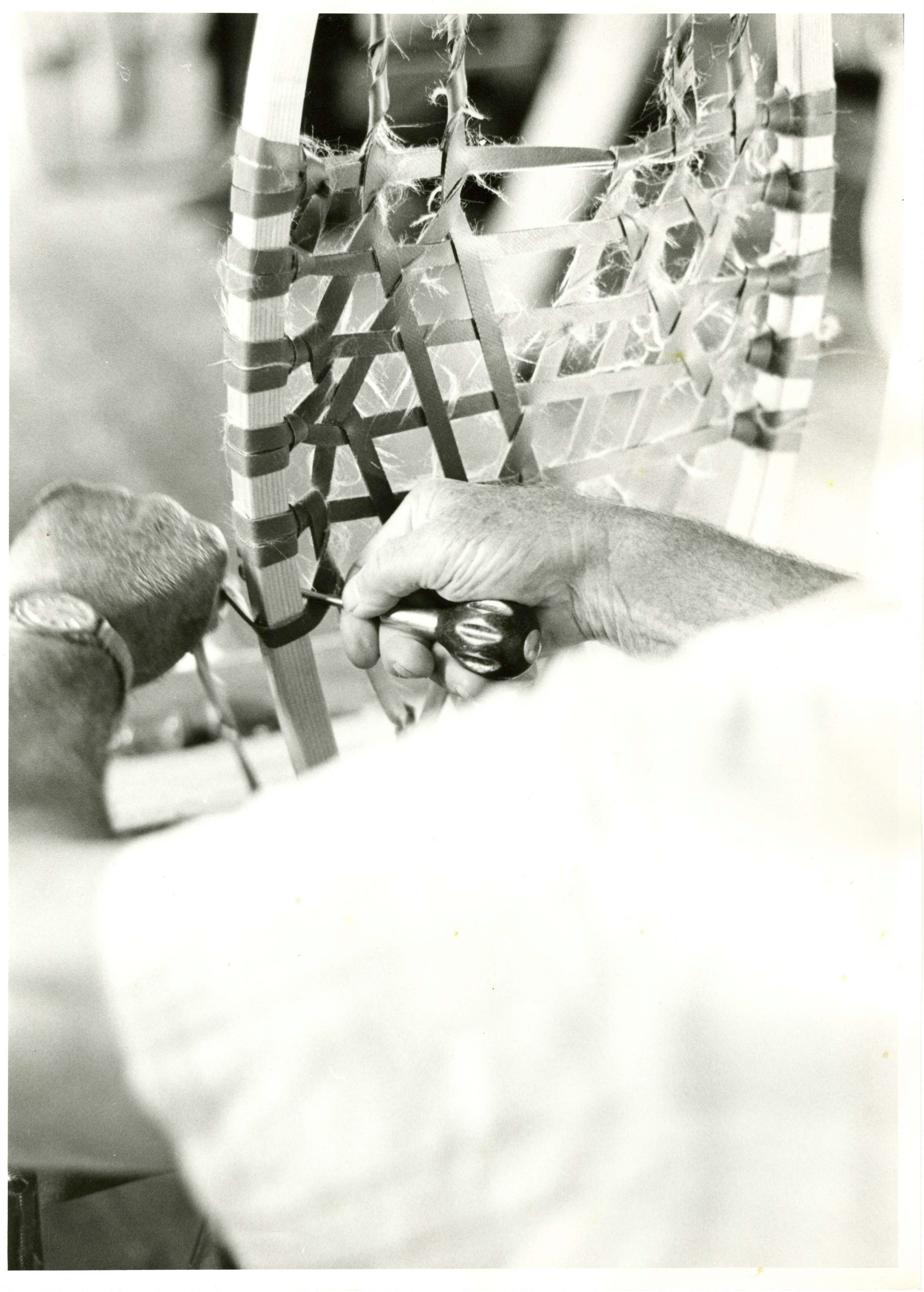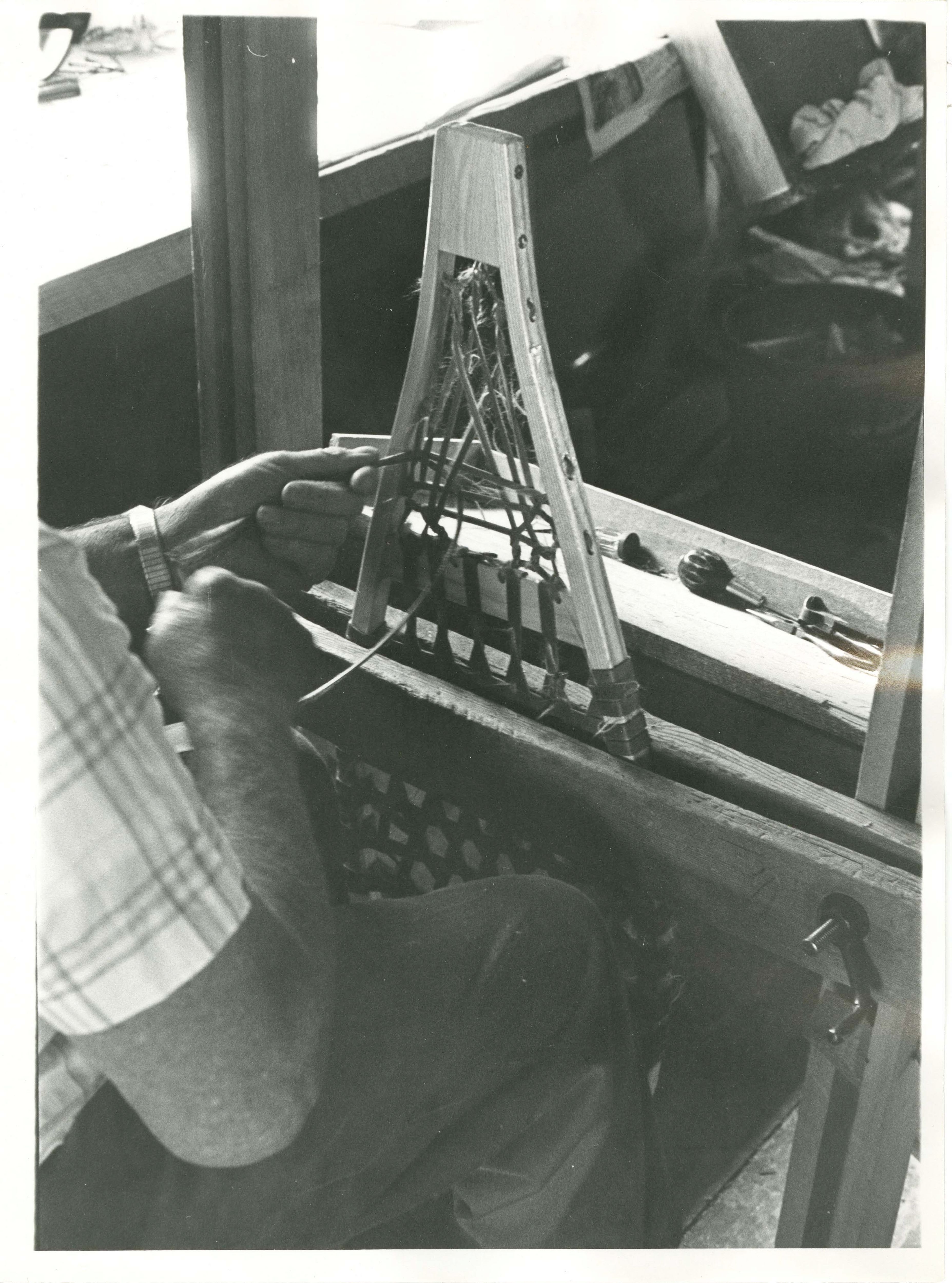 From his workshop in Caratunk, Walter York creates snowshoes. Anne Gorham covers the steps of making the bows for snowshoes.