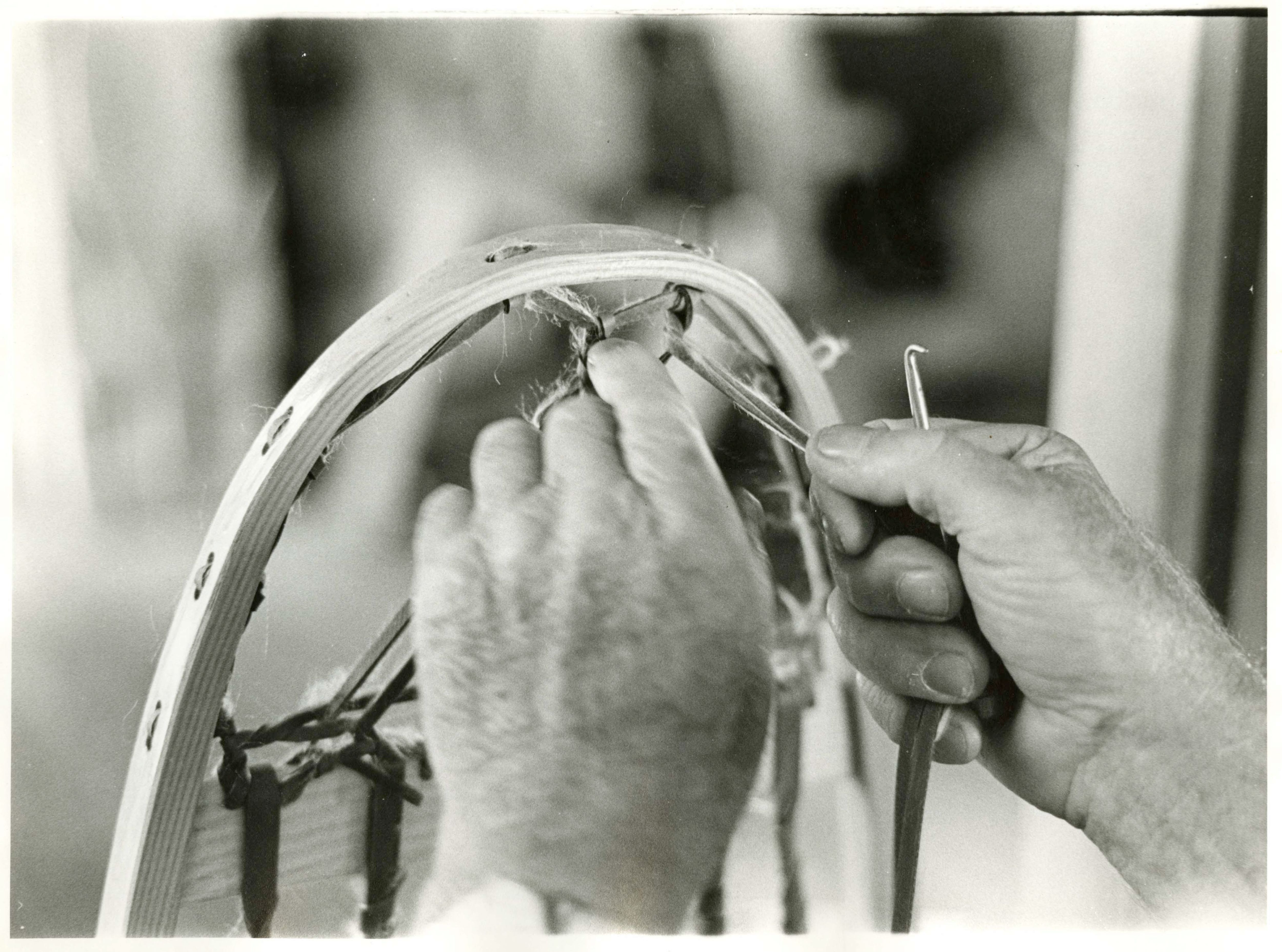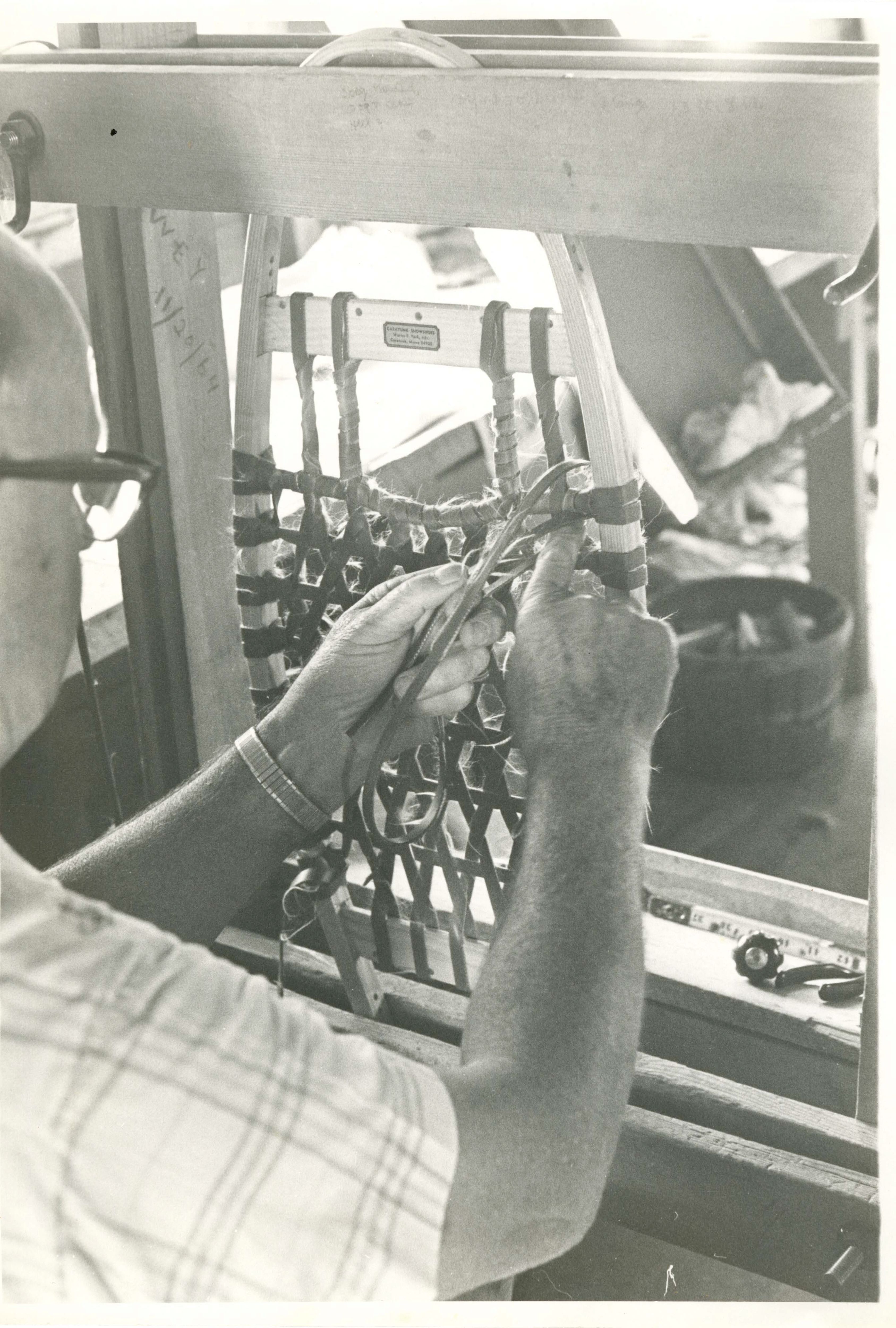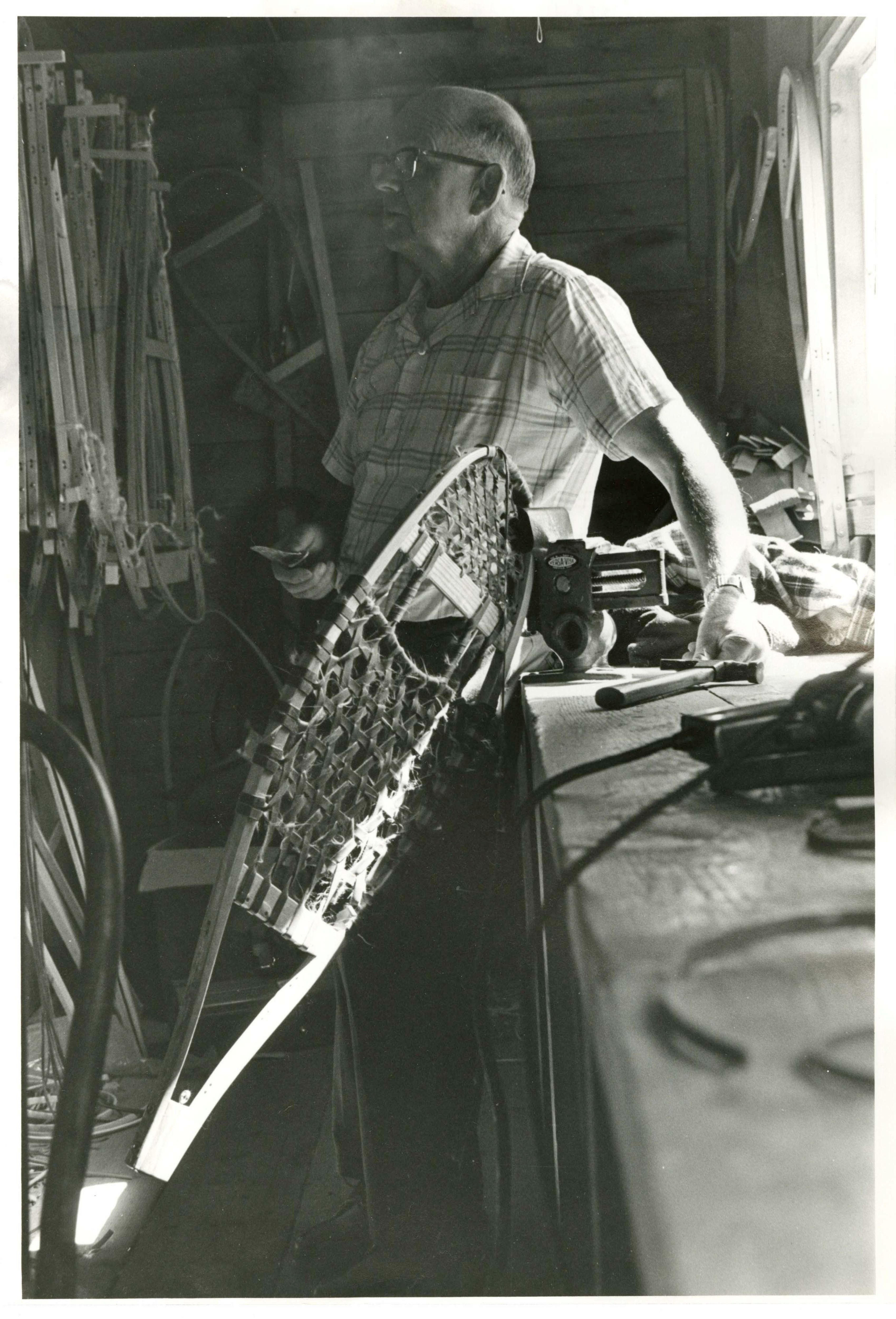 From his workshop in Caratunk, Walter York creates snowshoes. Anne Gorham covers the steps of making the bows for snowshoes.