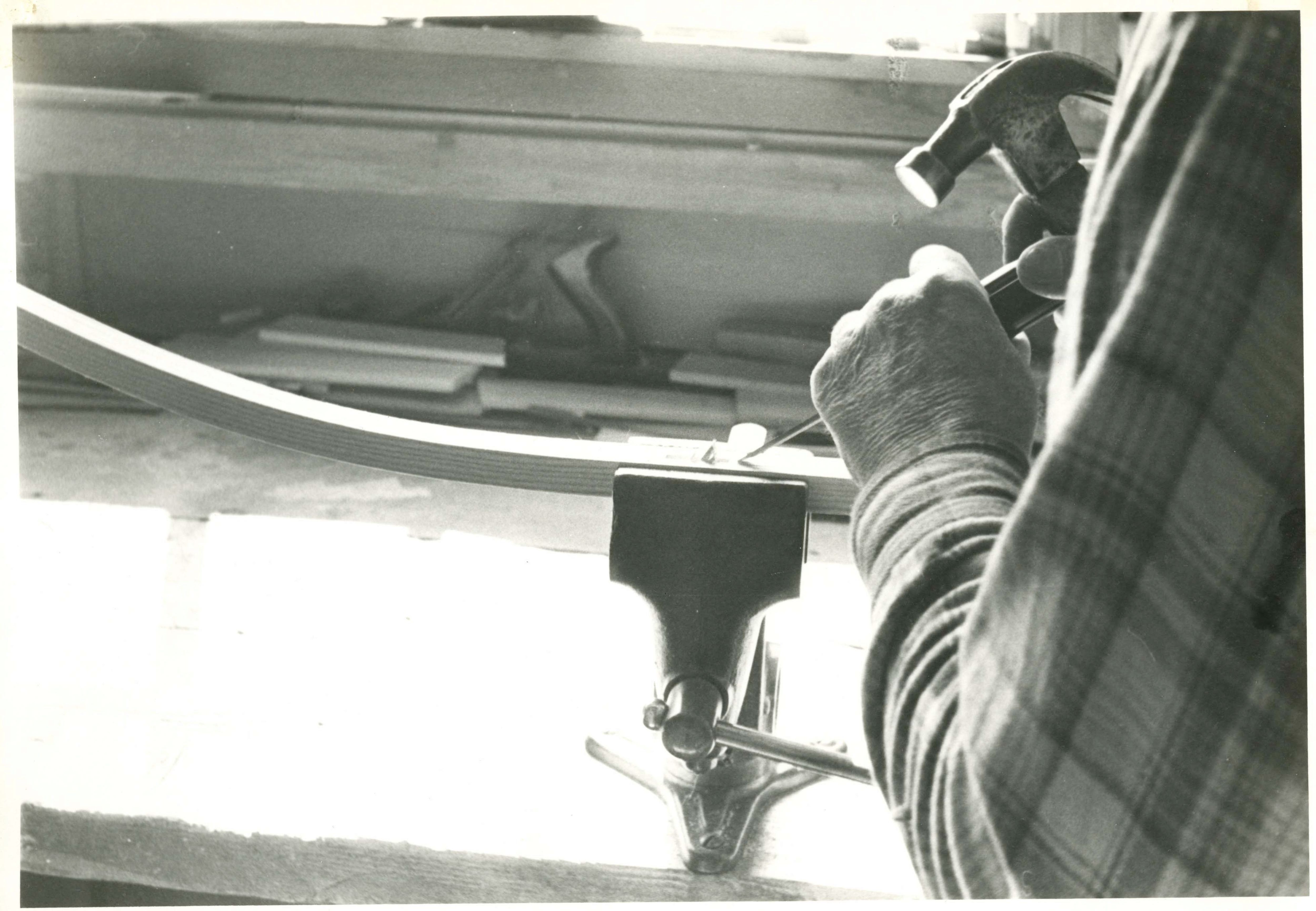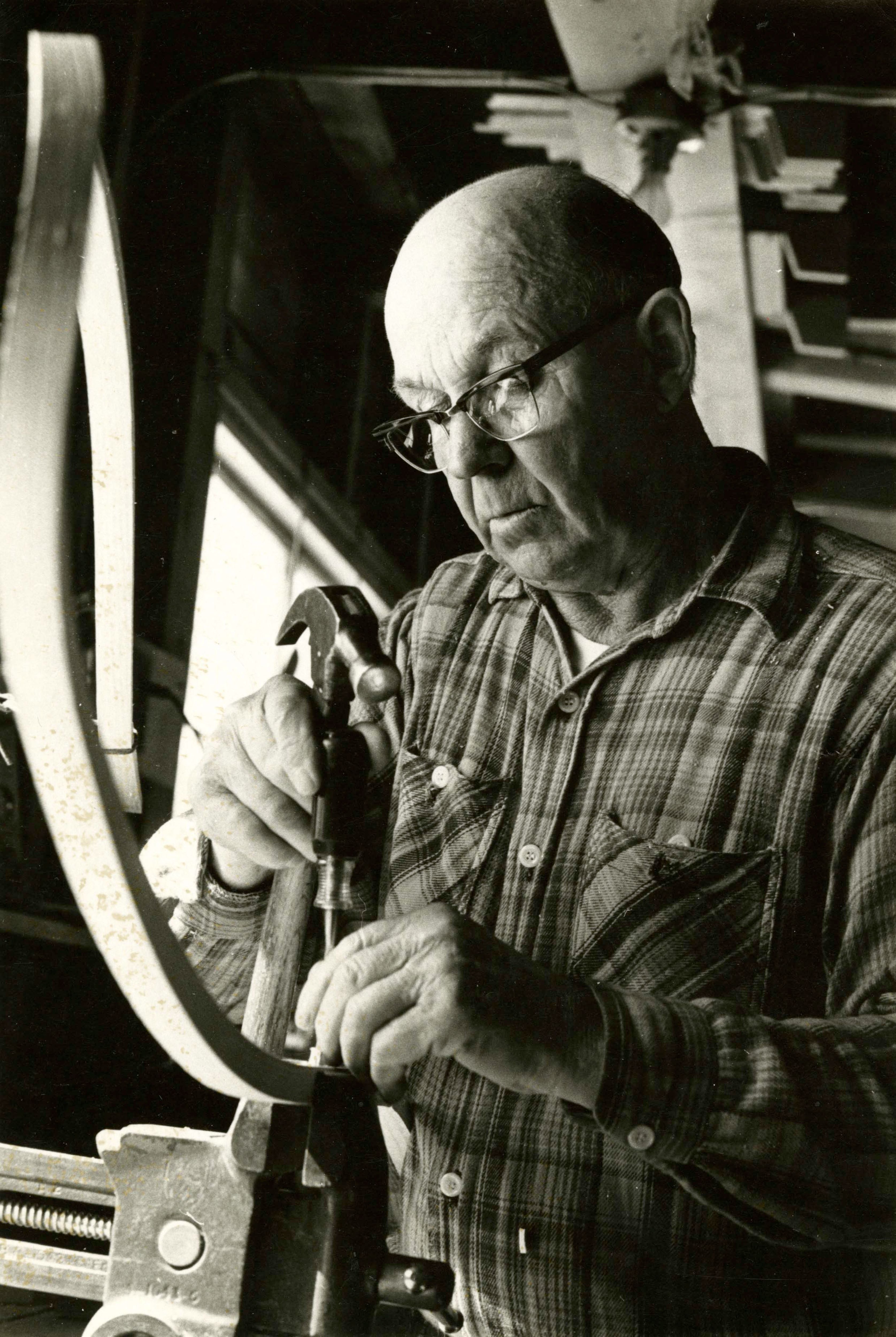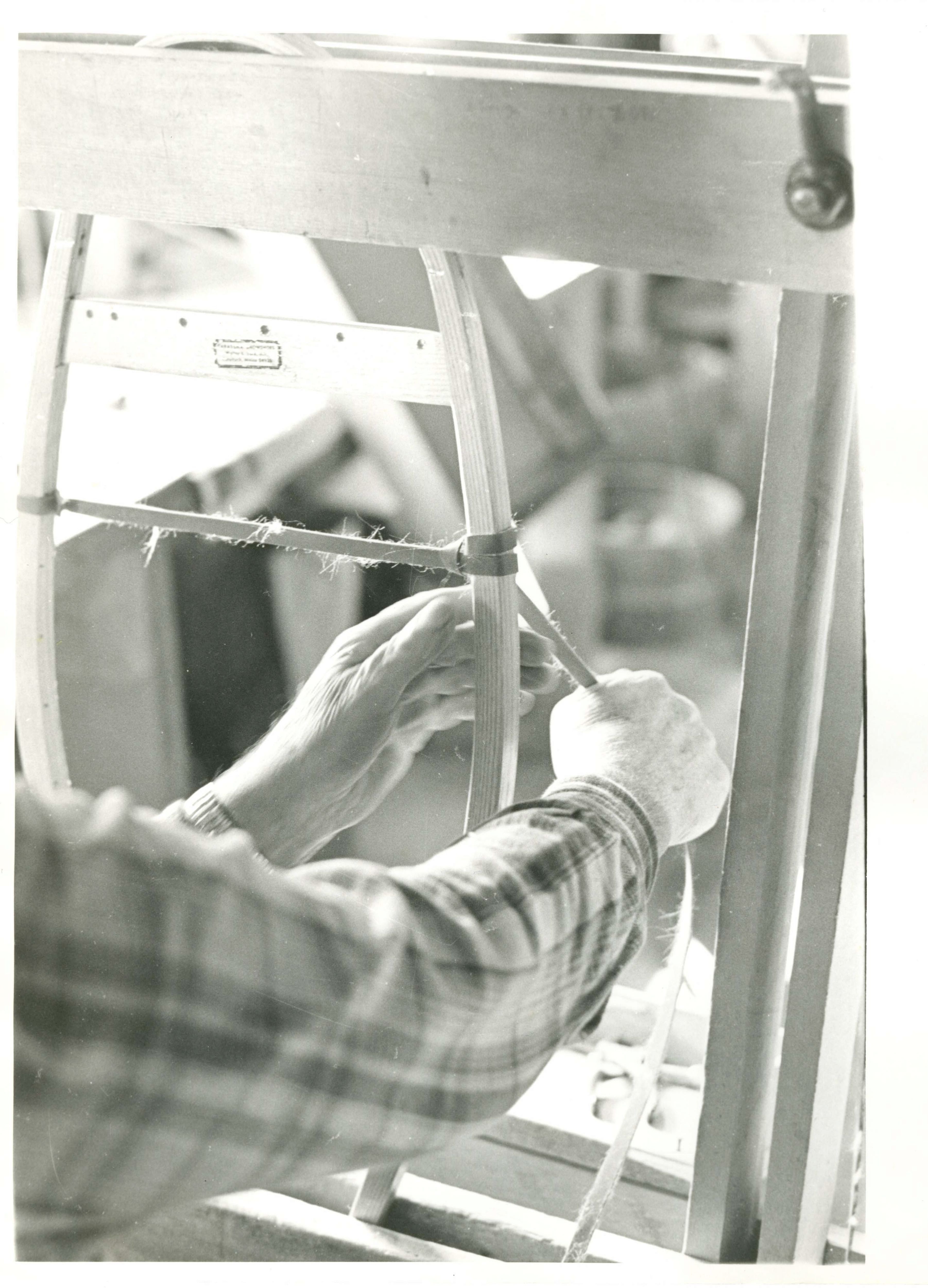 From his workshop in Caratunk, Walter York creates snowshoes. Anne Gorham covers the steps of making the bows for snowshoes.