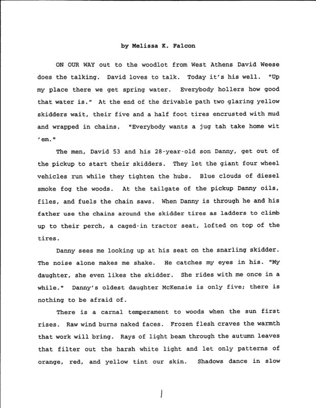 Melissa Falcon documents the life of the Weese family and their role in the community of Athens, Maine. Falcon discusses working in the woods and personal stories.