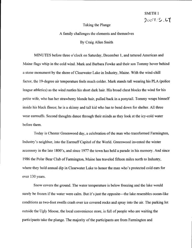 Craig Smith documents the annual polar bear plunge held in Industry to honor Chester Greenwood, creator of the earmuffs. Smith focuses on the Fowke family, who are partaking in the plunge.
