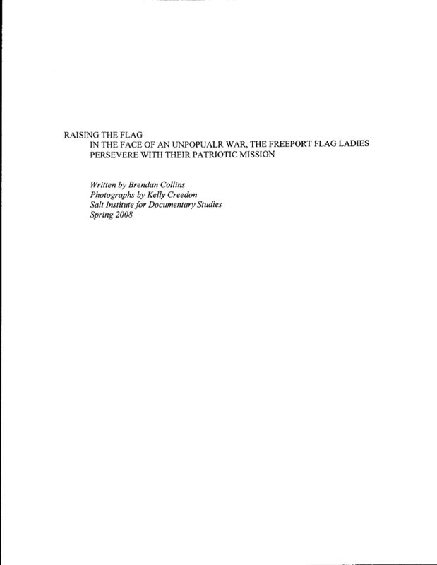 For the Freeport Flag Ladies, the American flag is more than just a symbol, but an entire lifestyle. Brendan Collins highlights how this group has made it their life's work to keep alive a sense of true Americanism, despite an unpopular war in Iraq.