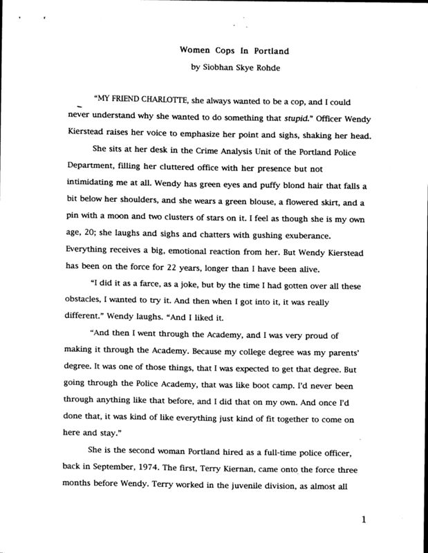 In 1974, the Portland Police Department hired their first full-time female police offices, bringing change to the police force. Siobhan Rohde looks at the roll that women have and continue to play within the Portland Police Department and how they adapt to a field that is mostly comprised of men.