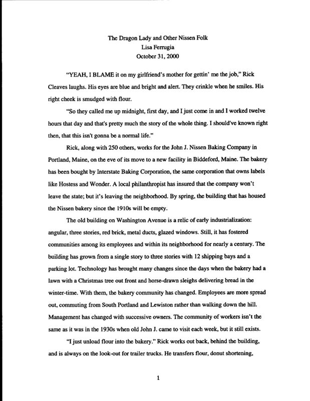 A long established part of Portland, the John J. Nissen Baking Company has had many employees come through the business. Lisa Ferrugia speaks to current and former employees of the baking company to learn about their experiences working for the company and their opinions about a facility move to Biddeford.