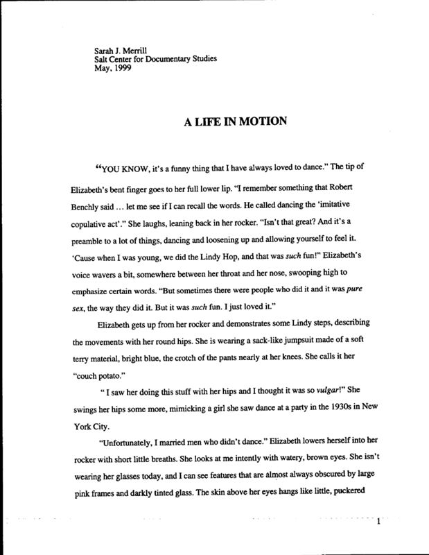 Even at old age, Elizabeth Shames continues to dance with the Perennial Effects dance group. Sarah Merrill highlights the life of Shames, discussing her history with dancing and her personal life.