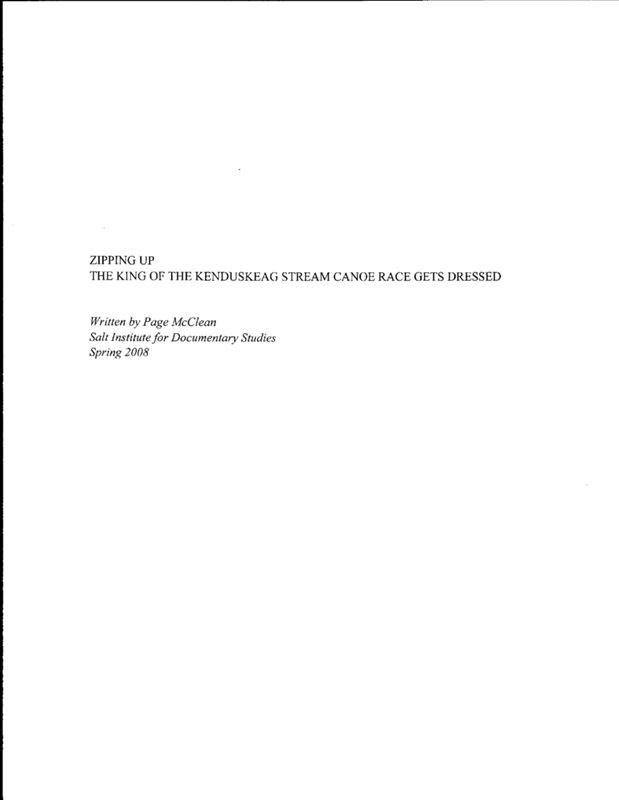 Page McClean documents the preparations of Edward Kellogg, a racer participating in the 42nd annual Kenduskeag Stream Canoe Race. McClean speaks to Kellogg about his racing gear and love for canoeing.