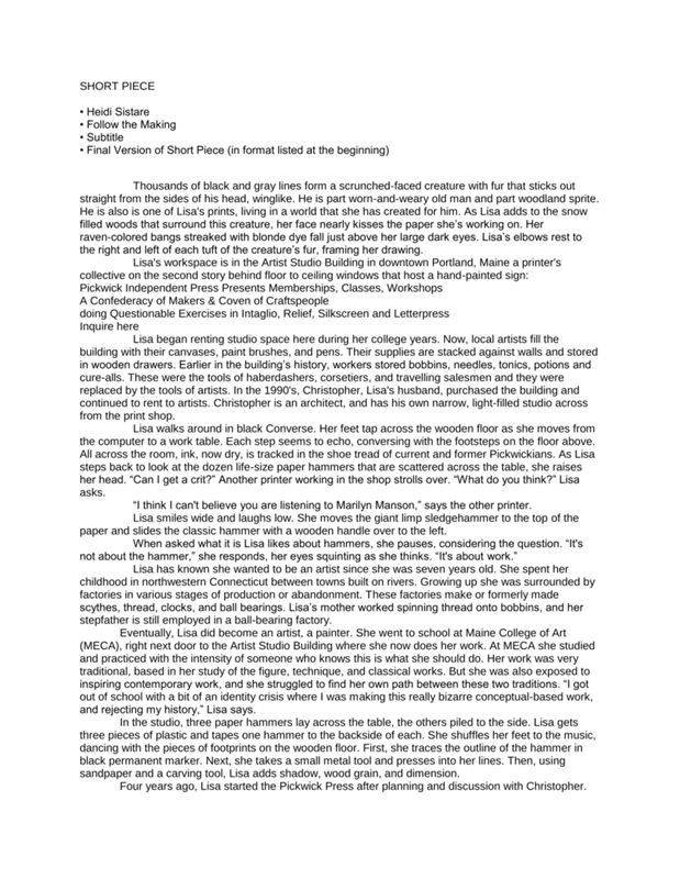 Heidi Sistare highlights the work of Lisa Pixley, a trailblazer in the energetic printmaking community in Portland. Sistare speaks to Pixley about her printing studio, Pickwick Independent Press, and about being an artist.