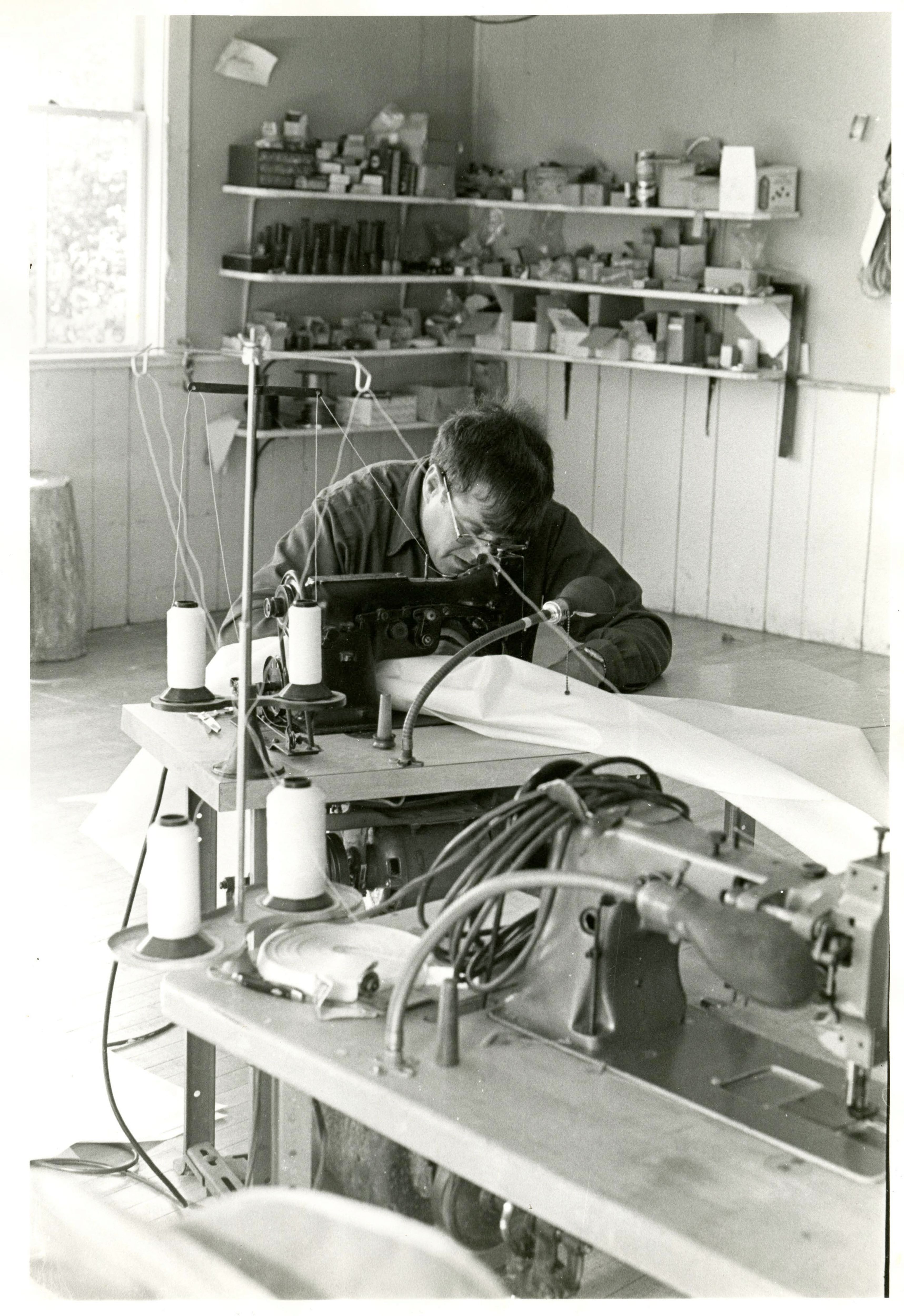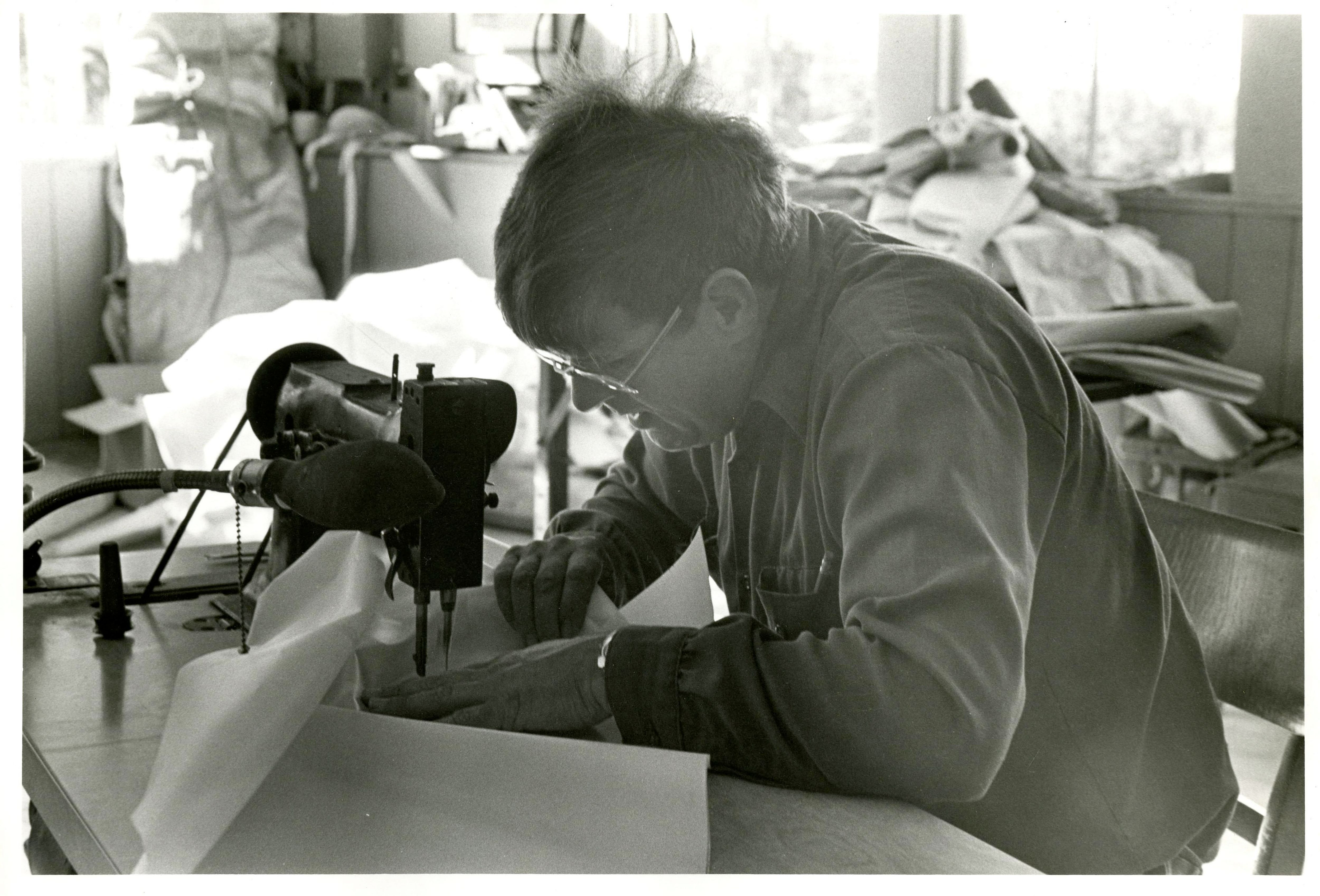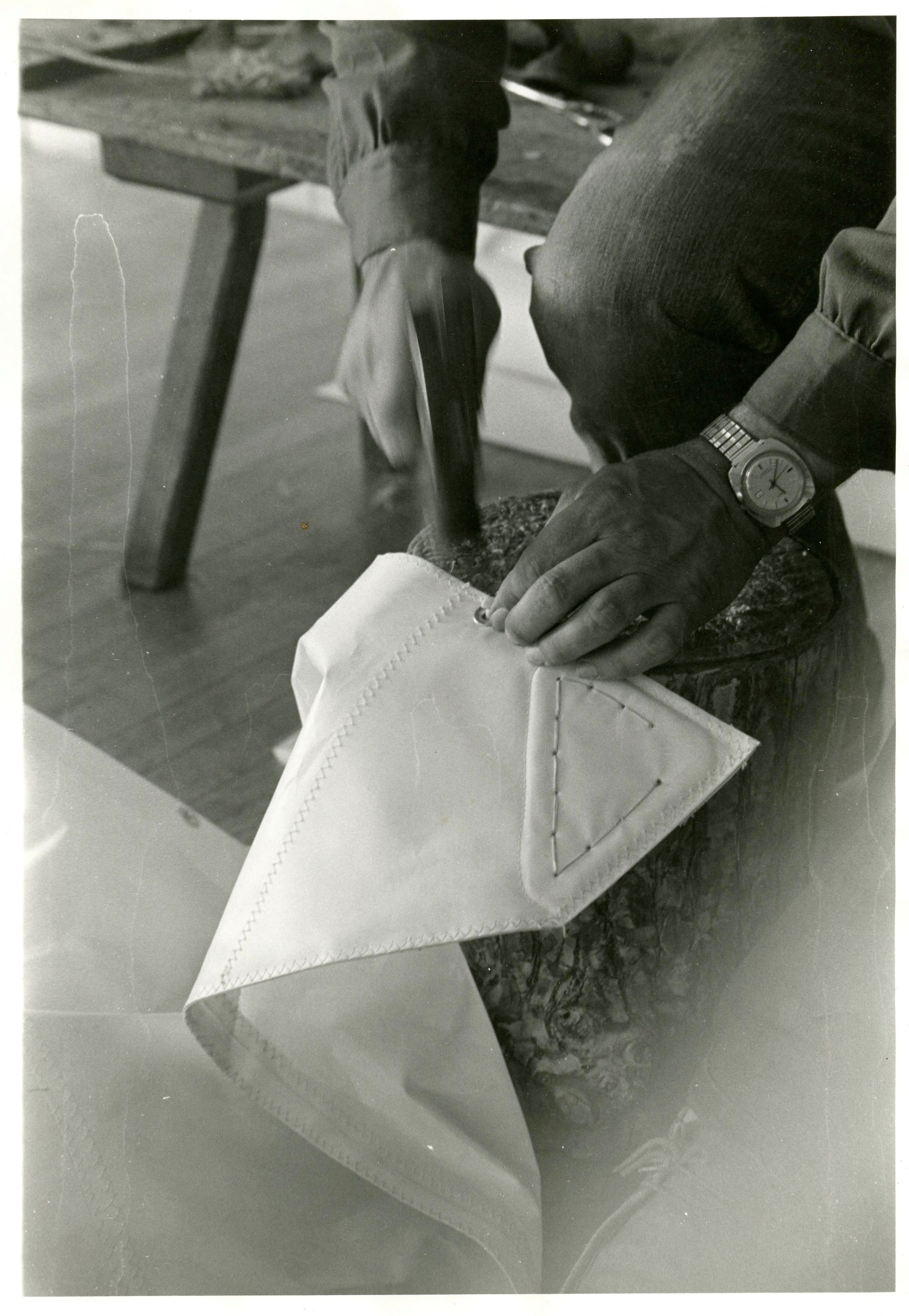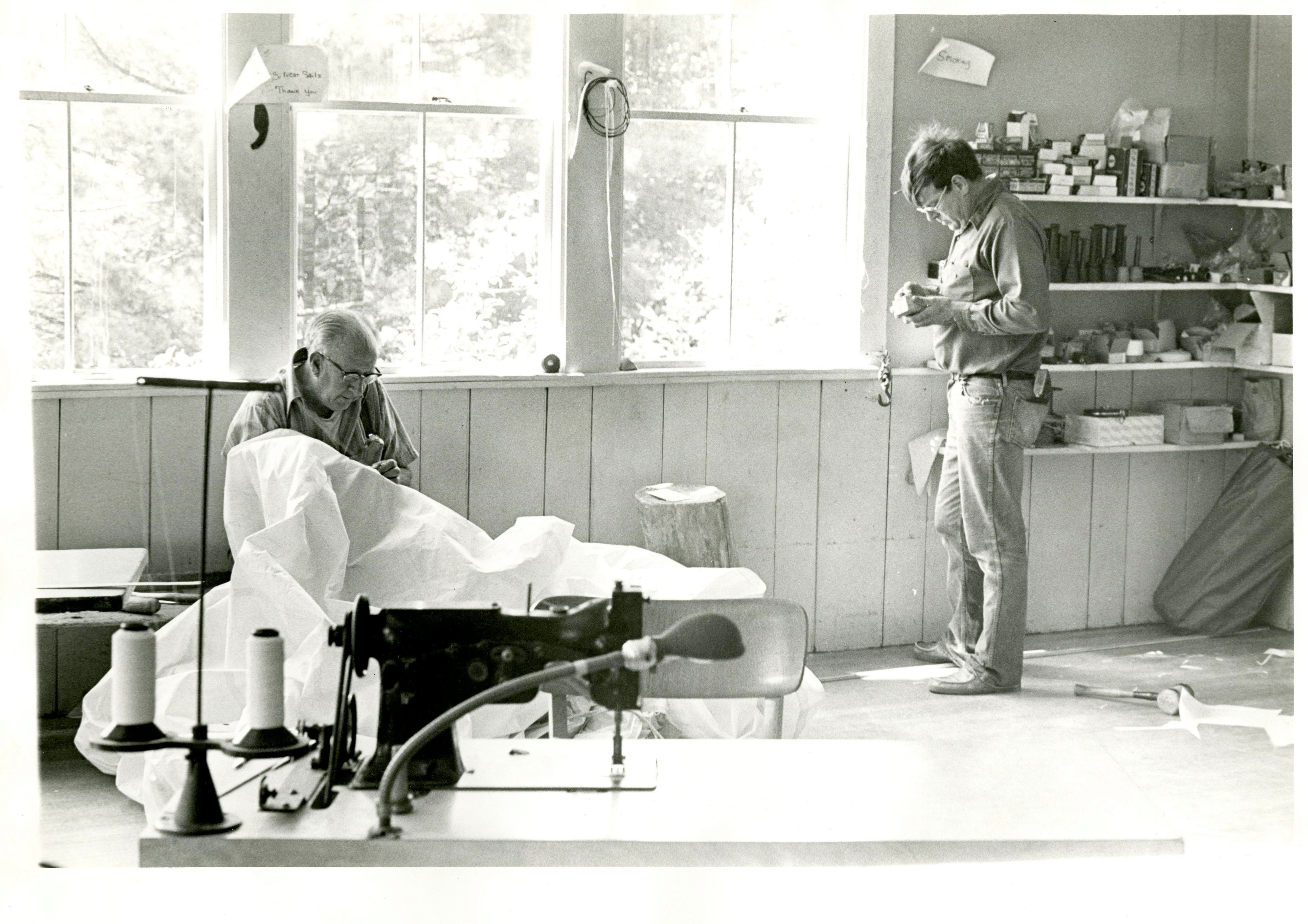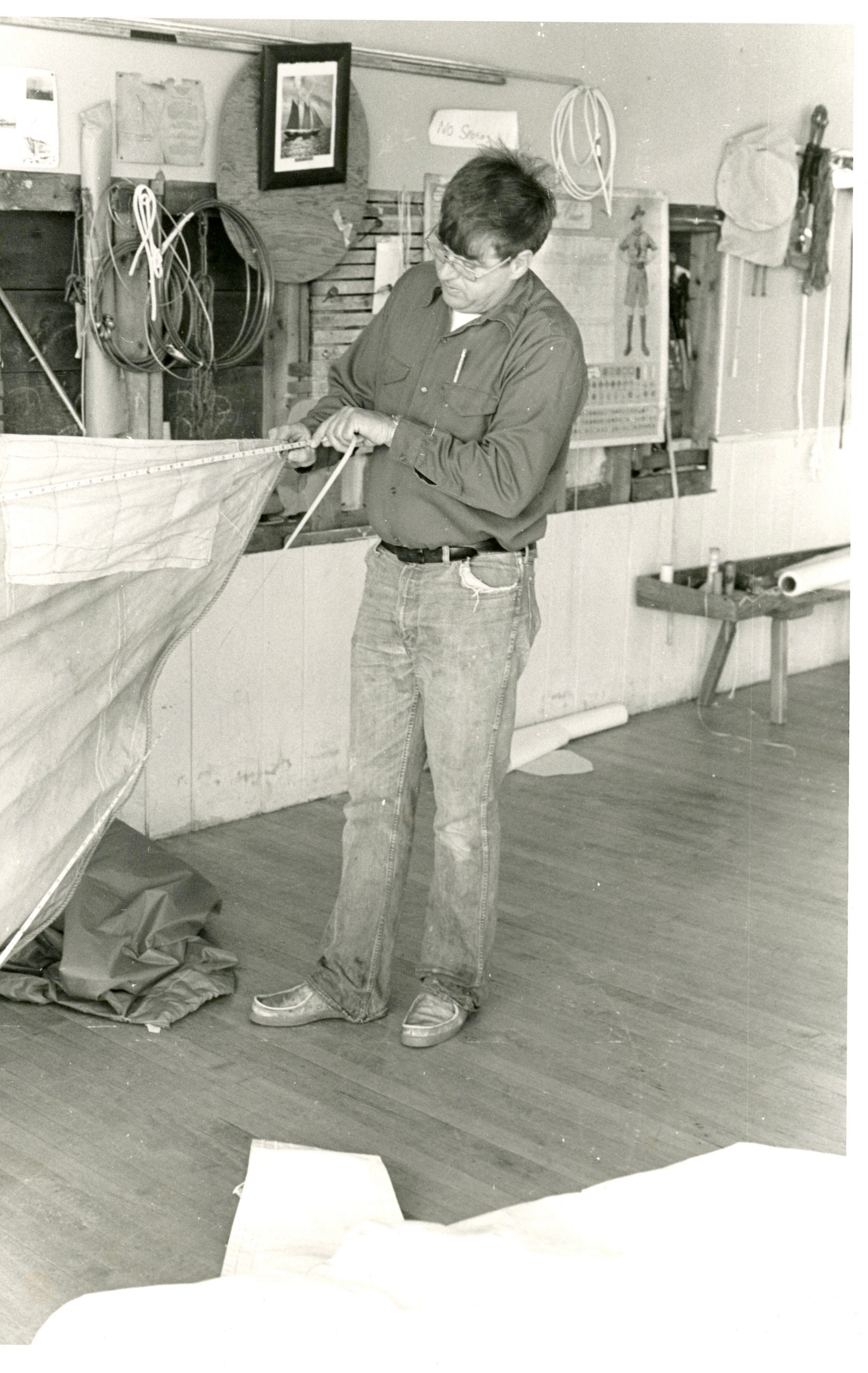 Sailmakers by trade, Don and Clarence Hale create sails in their sailmaking shop in Sargentville. Anne Gorham and Anne Pierter documents the work that goes into creating the perfect sail.