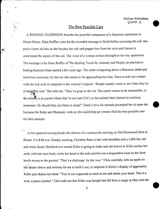A practitioner of alternative healing, Dana Roffler runs a healing business for animals and people. Melissa Matsubara discusses how Roffler uses Shamanism as a form of healing.