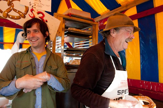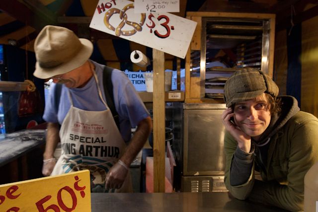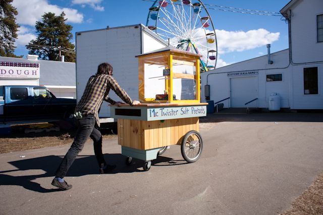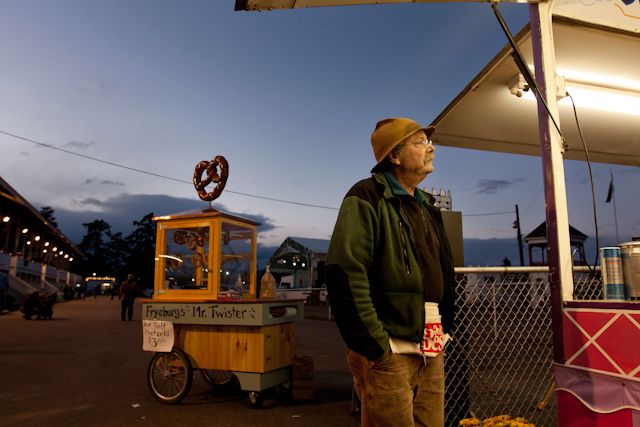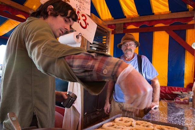 Returning to his hometown in Fryeburg once a year, Keegan Cooke returns to help his dad sell pretzels at the Freyburg Fair. Noah Fowler captures the work of the Cooke's.