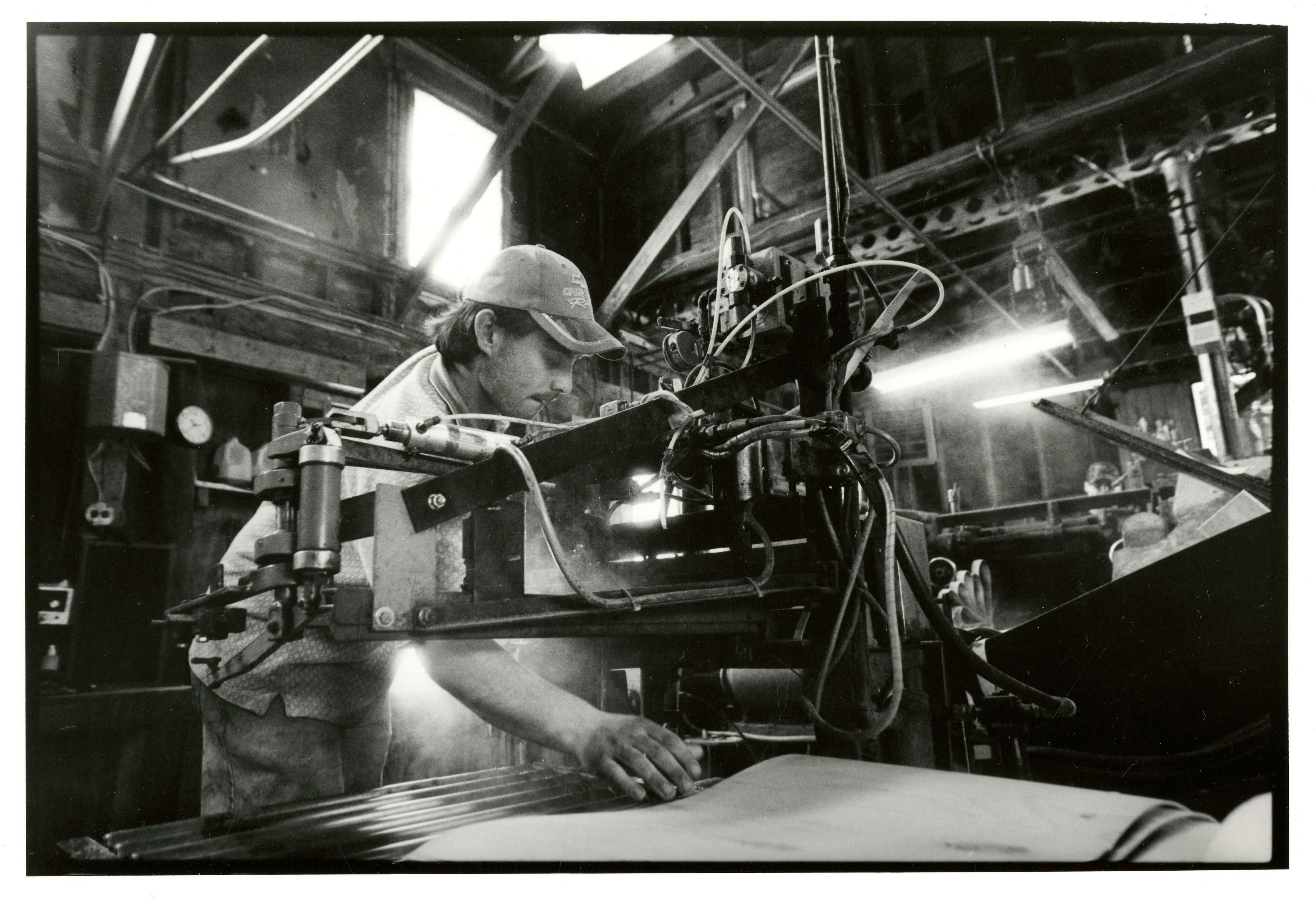 In the small town of Strong, the Strong Wood Products, Inc. toothpick and dowel mill begins manufacturing early each morning. Megan McCune captures images of employees at the factory to highlight their jobs and the work produced at the mill.