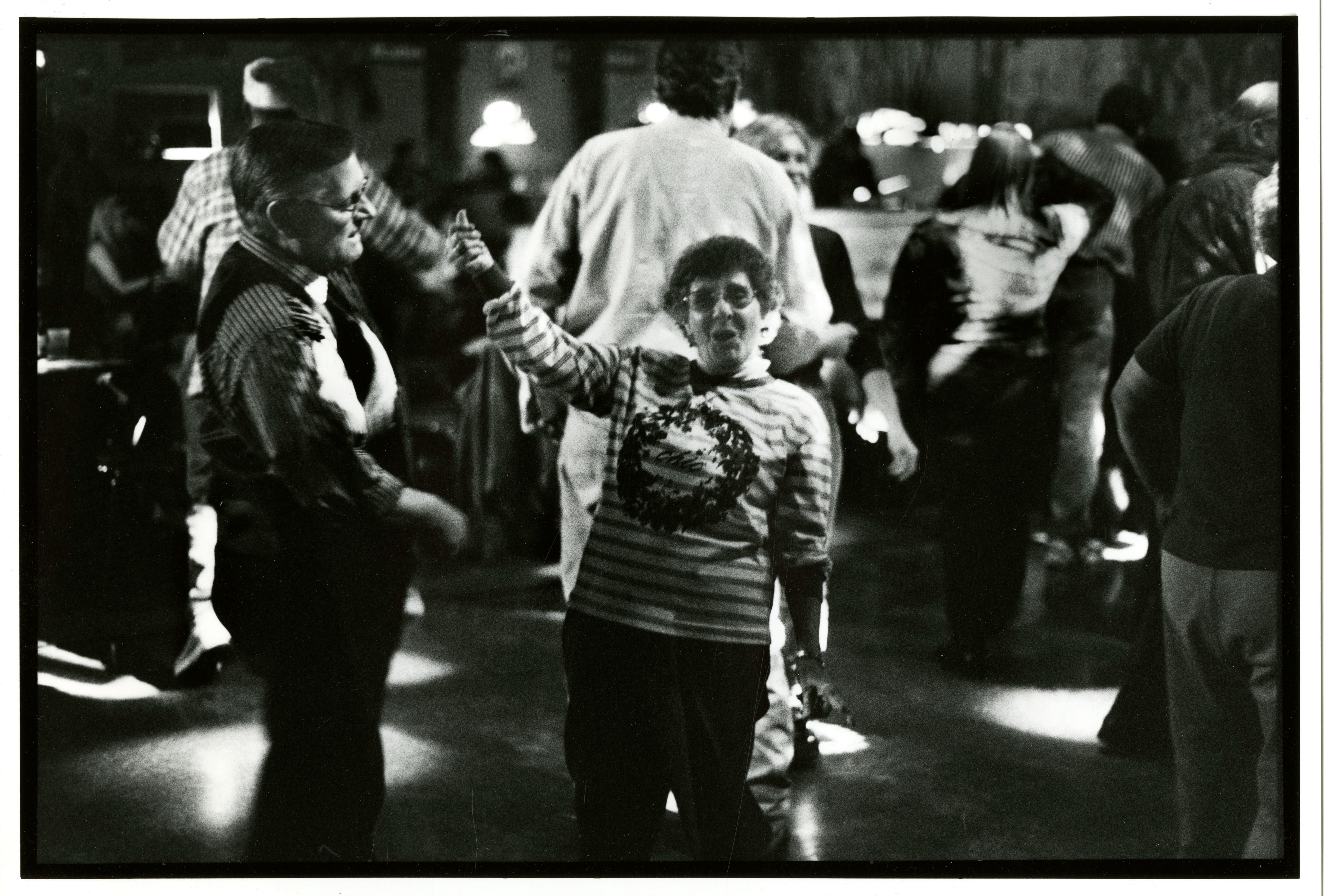 Annie Tselikis captures a photograph of a woman dancing at the sock hop.
