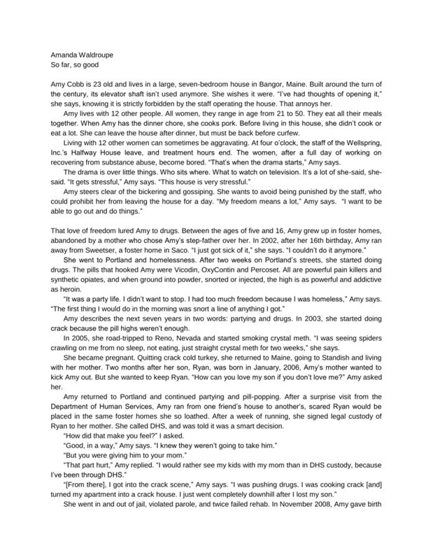 After being threated with being sent to prison, Amy Cobb decided to enter a drug abuse recovery program at Wellspring, Inc.'s Halfway House for women. Amanda Waldroupe discusses how Cobb has to overcome her desire to leave the home, in order to fully recovery.