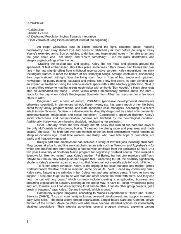 For individuals who have autism, many programs and services allow them to lead organized and scheduled lives, easing the challenges they face daily. Caitlin Little highlights the life of Kaley Young, a high-functioning autistic women who is taking steps towards integration despite budget cuts to the social services that assist her.