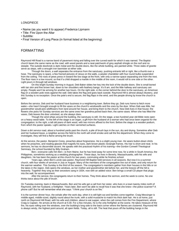 The Raymond Hill Baptist only holds its services during the summer season, and many of the congregation members travel from in and out of state to attempt service. Frederica Lipmann documents the events surrounding arson attacks on the church, and how the church community reacted.